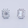 Refined pair of earrings crafted in 18-karat white gold, set with two emerald-cut diamonds totaling approximately 1 carat, surrounded by 28 brilliant-cut diamonds with a combined weight of around 0.80 carat.