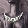 Magnificent exclusive necklace crafted in 18-karat white gold, set with eight vivid green emeralds totaling approximately 8 carats, surrounded by a pavé of around 500 brilliant-cut white diamonds with a combined weight of about 10 carats.