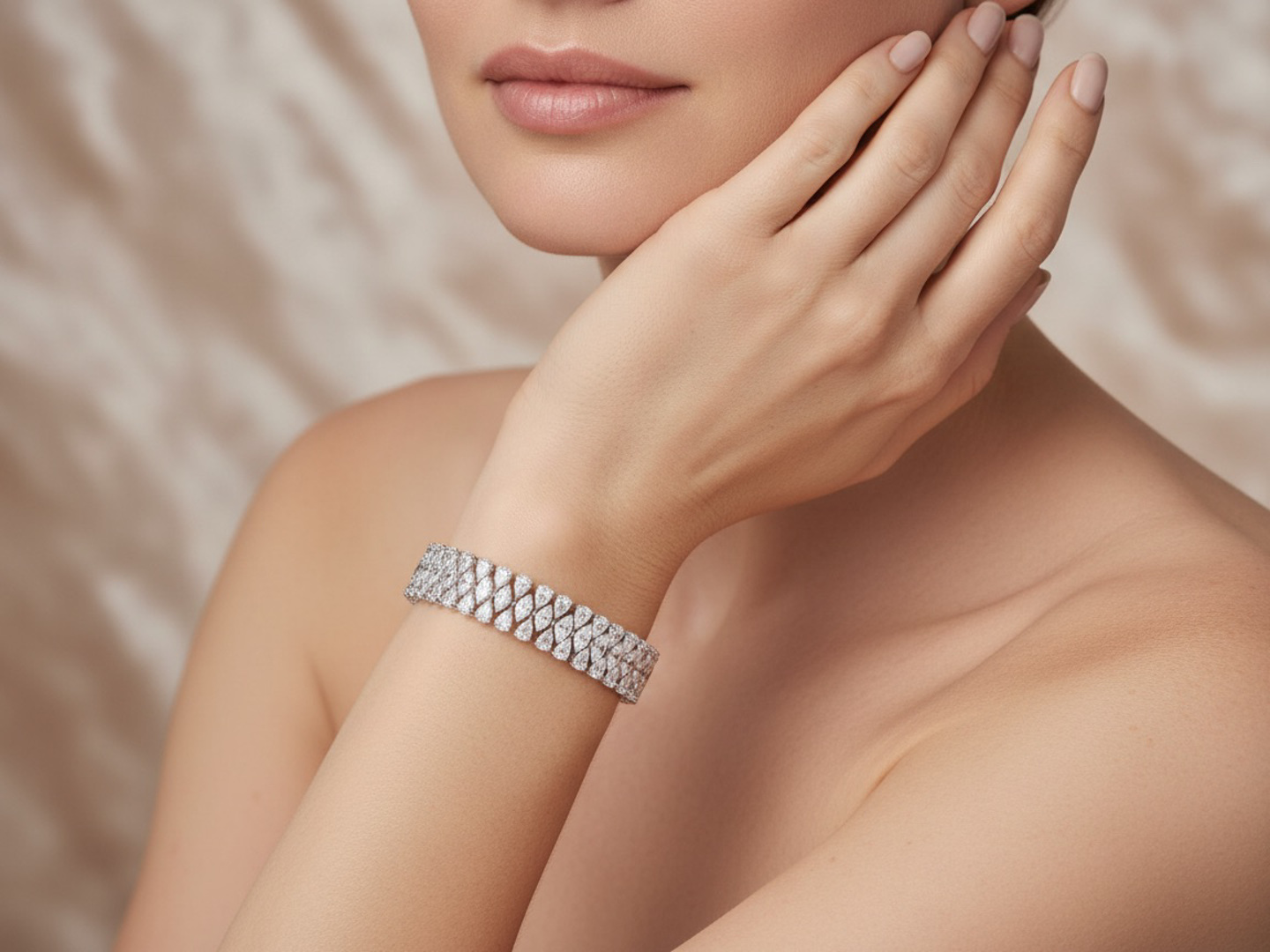 Measuring 18 cm in length and 9–10 mm in width, this is a masterpiece of fine jewelry, uniting elegance, craftsmanship, and radiant luxury in perfect balance.