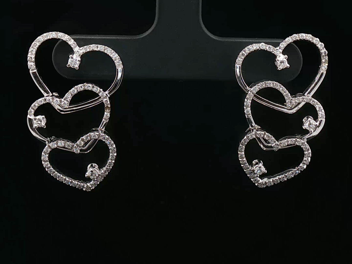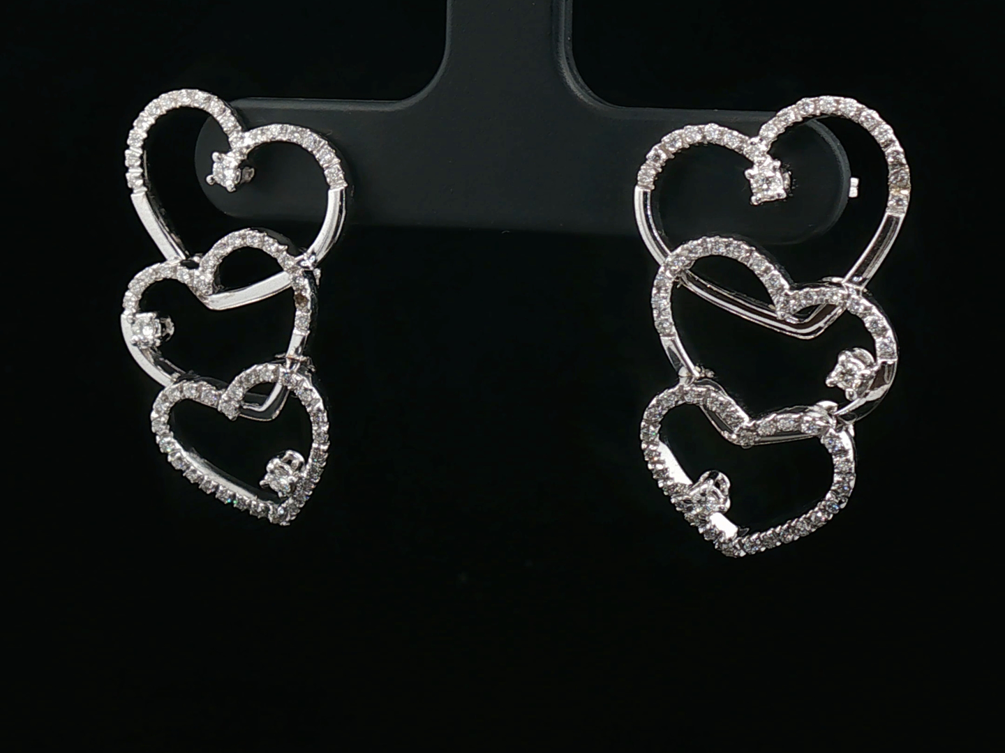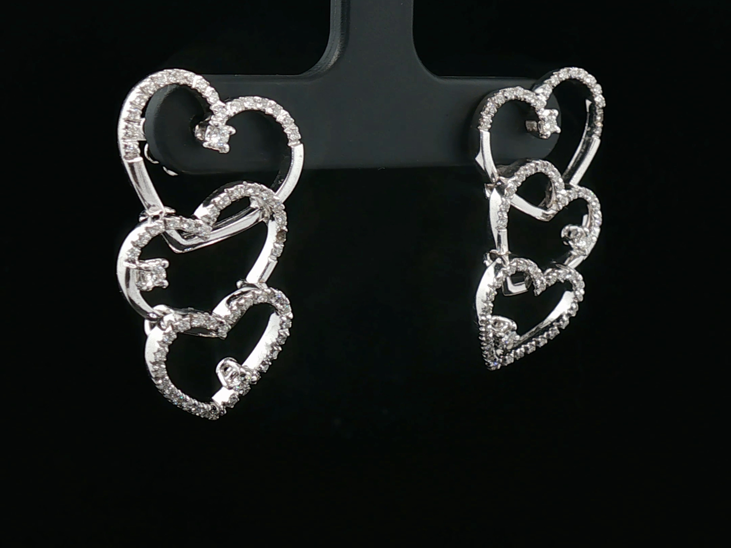 Elegant earrings in 18kt white gold (marked 750) set with 144 brilliant-cut diamonds of approximately 1.20ct.