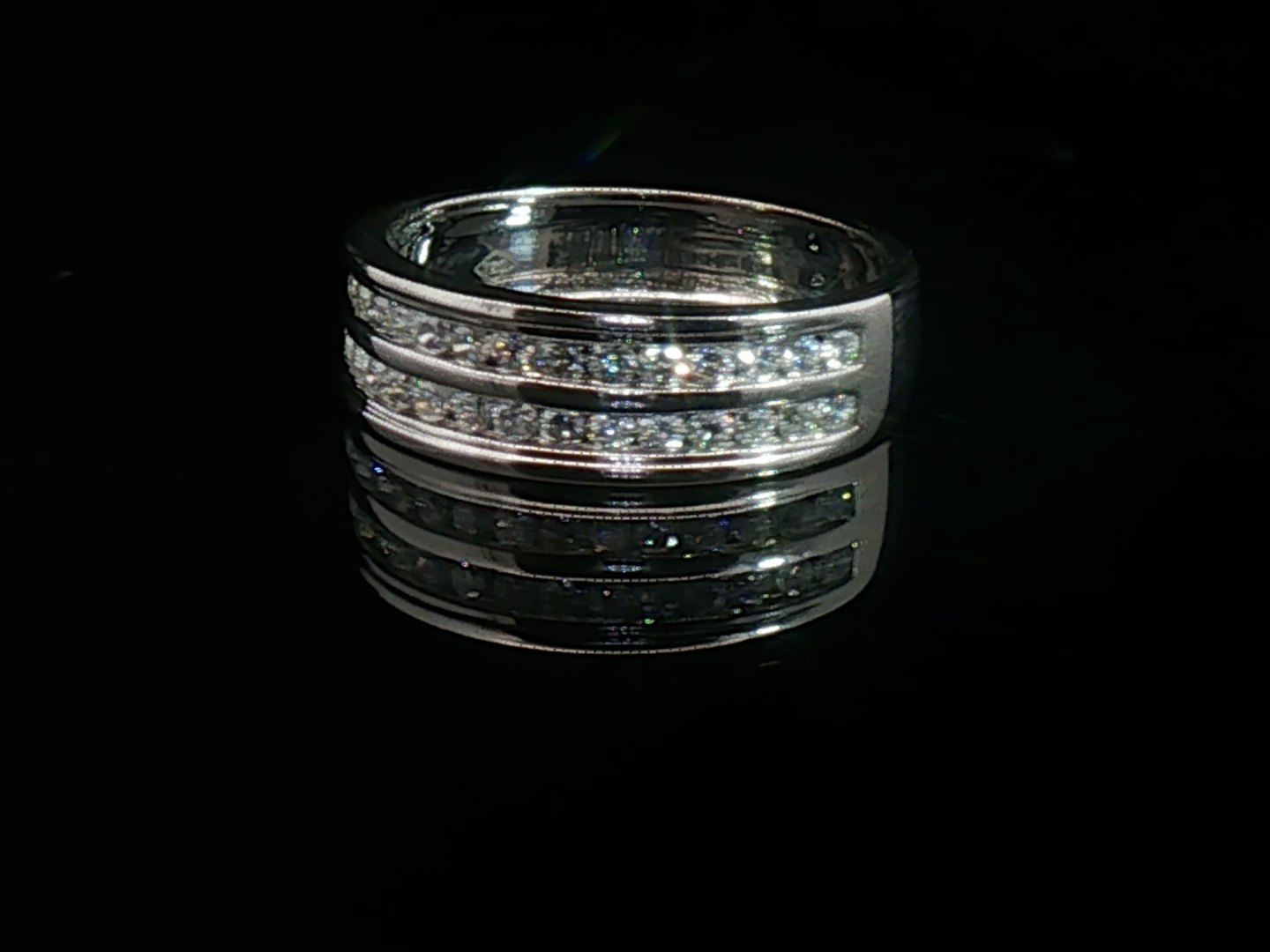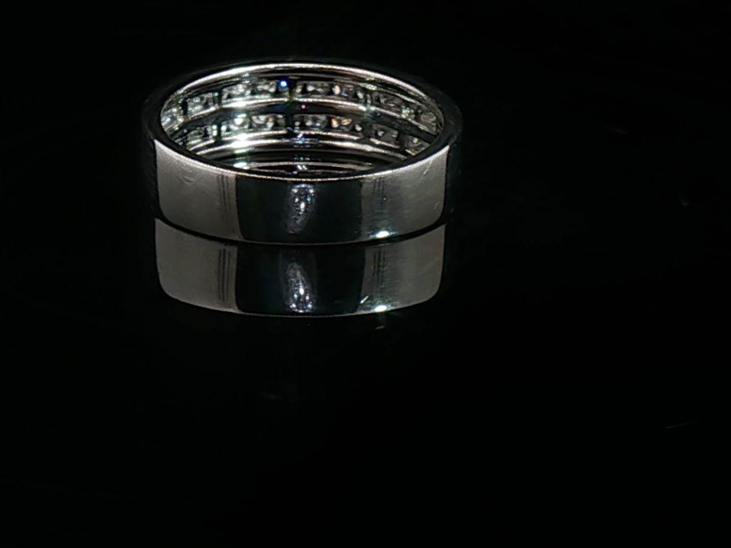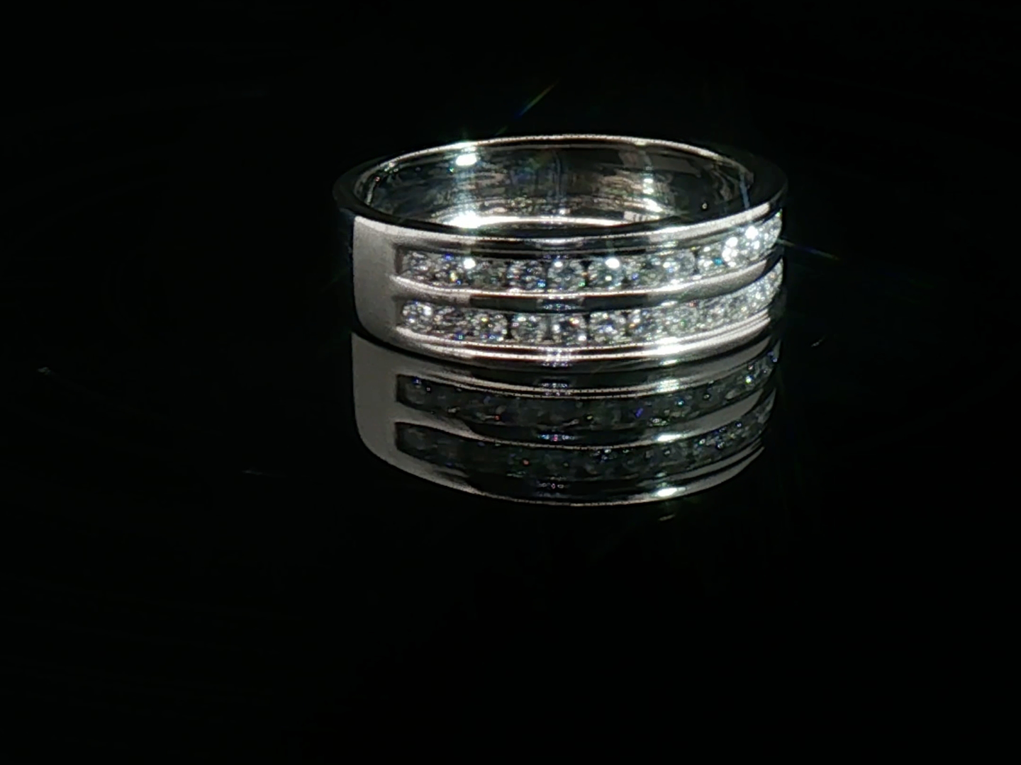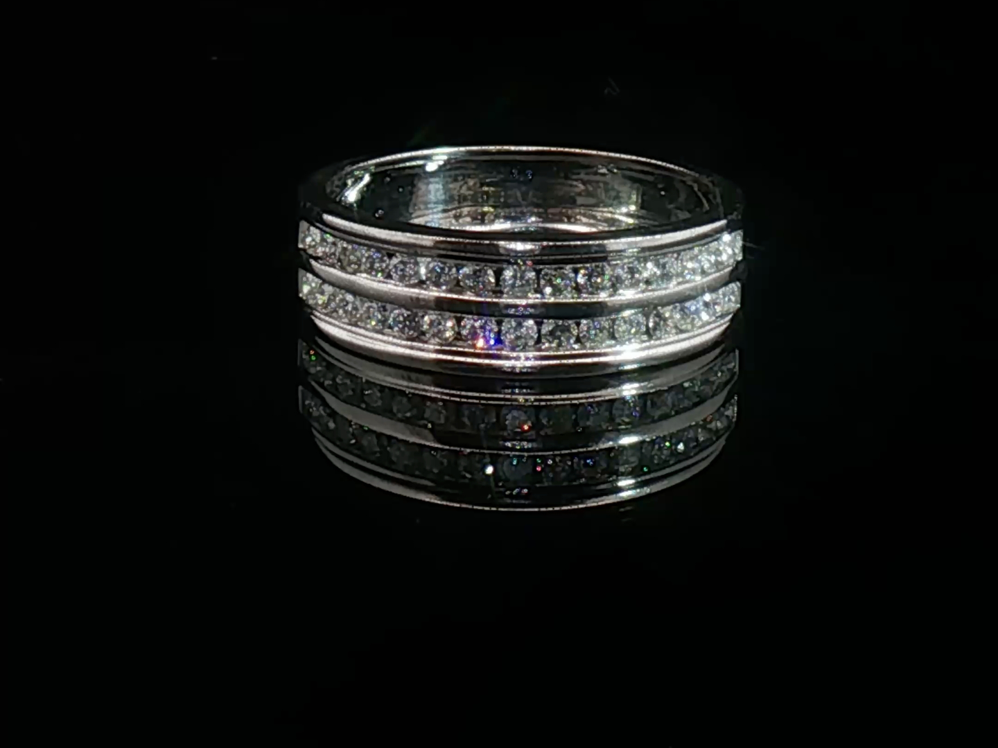 Ring set with double row of white diamonds (30) brilliant cut Channel setting