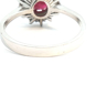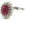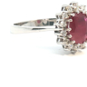 Ring in 14kt white gold (marked 585) set with 1 ruby of +- 2.50cts. surrounded by 14 brilliant-cut diamonds +- 0.42ct.