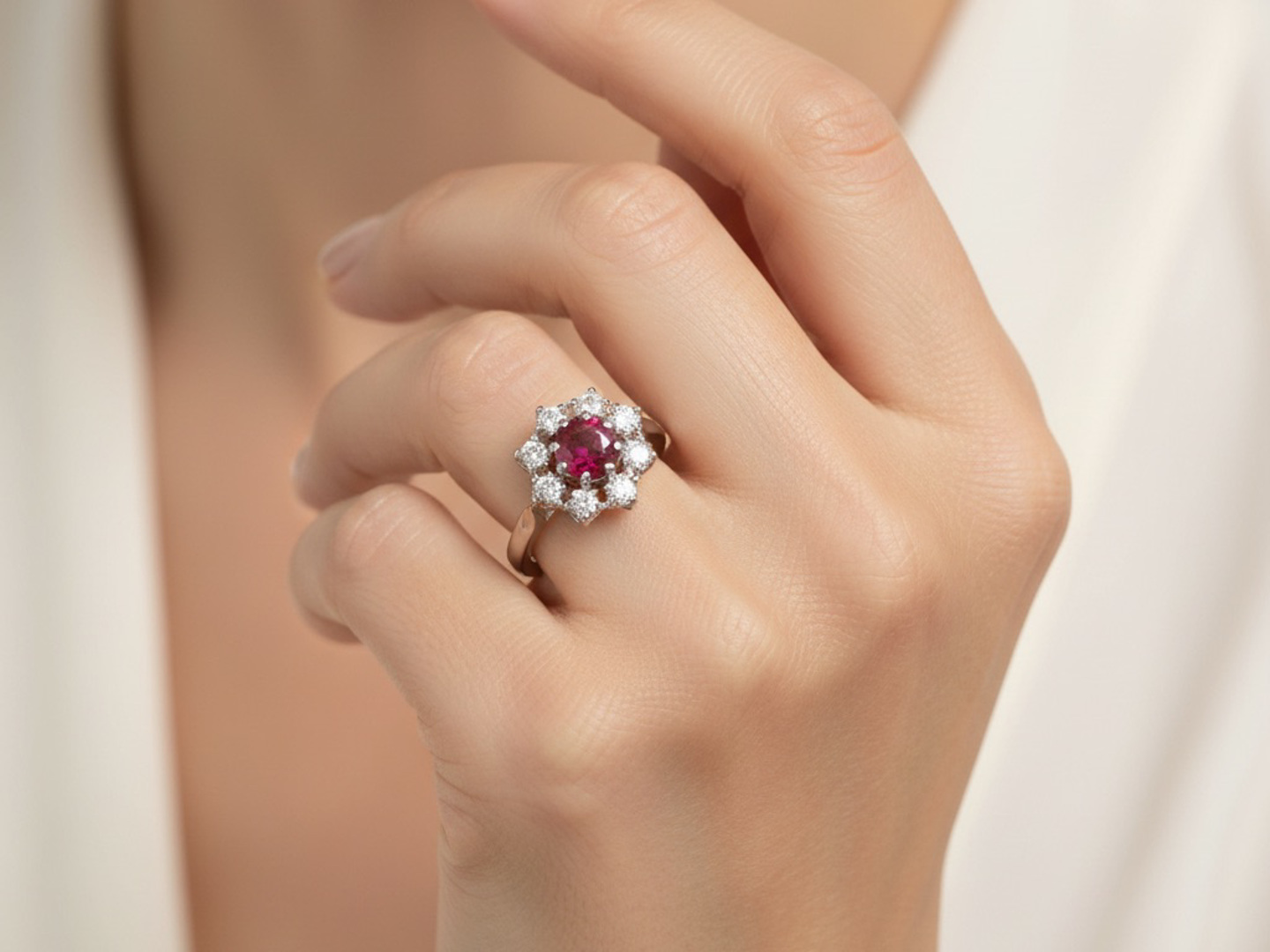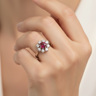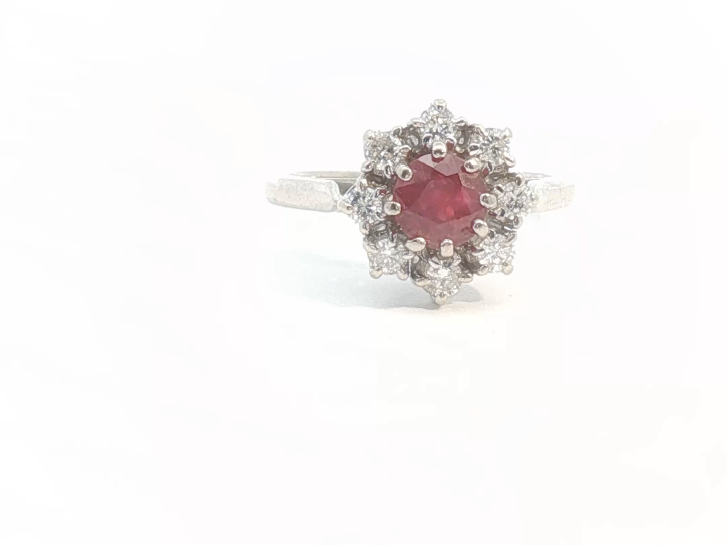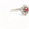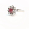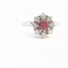 Ring with 1 ruby of +-0.70ct, vivid red, surrounded by 8 diamonds