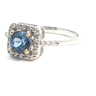 Elegant ring with a single Ceylon sapphire of 0.75 carat surrounded by 24 brilliant-cut diamonds 0.24 carat
