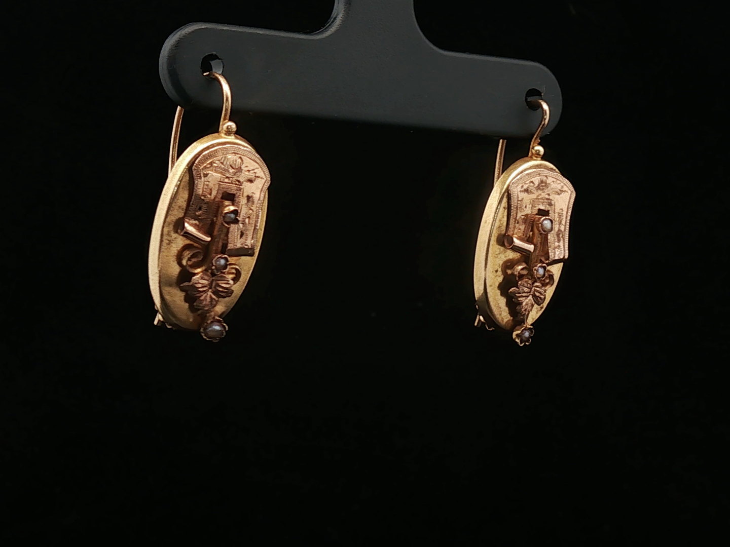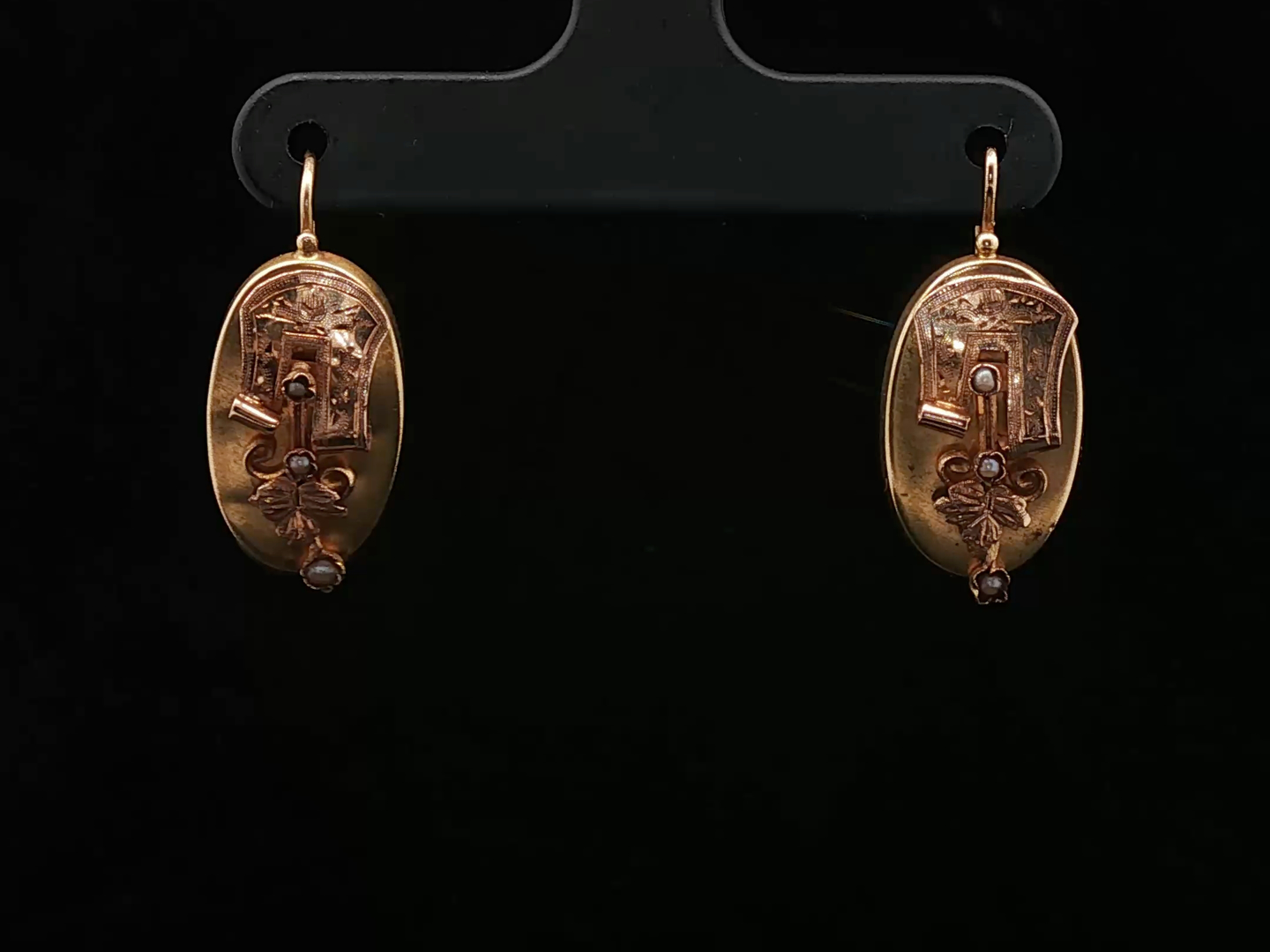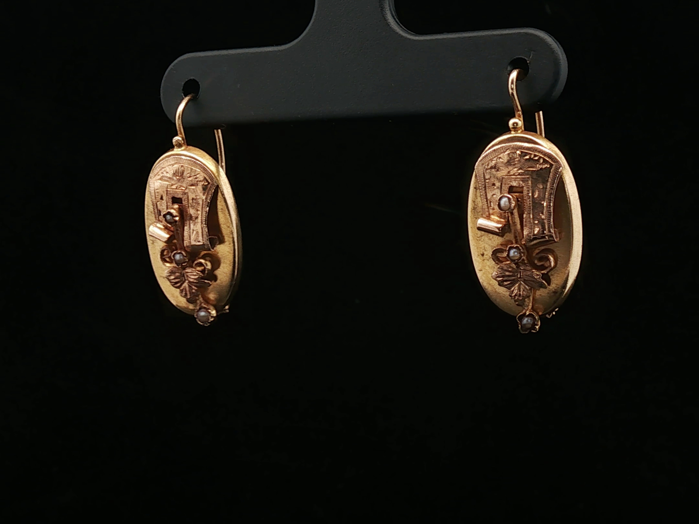 Antique earrings Napoleon III circa 1880 in 18 kt yellow gold set with 6 small pearls