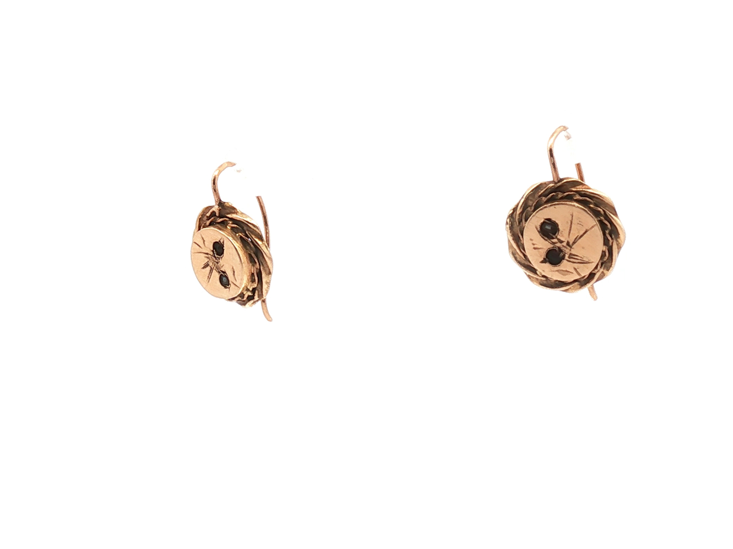 Antique earrings Napoleon III circa 1880 in 18 kt yellow gold set with small rubies, diameter: +- 10 mm.