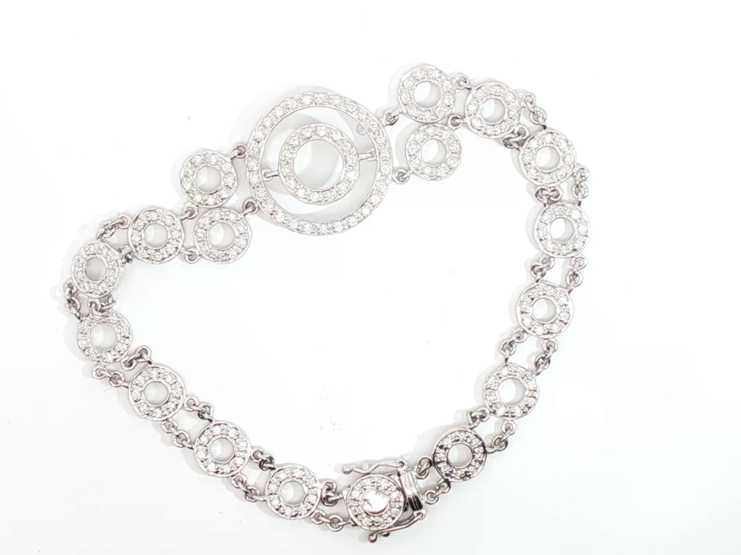 Fashionable bracelet set with 177 white brilliant-cut diamonds, total: approx. 2.00ct, colour: F-G exceptional white, and clarity: VS-SI. Set in 18ct white gold (stamped 750). Weight: 10.91 grams and length: 18cm