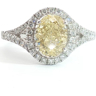 Ring with GIA certificate set with 1 diamond - oval cut, fancy light yellow, surrounded by 48 small brilliant-cut diamonds