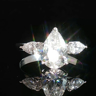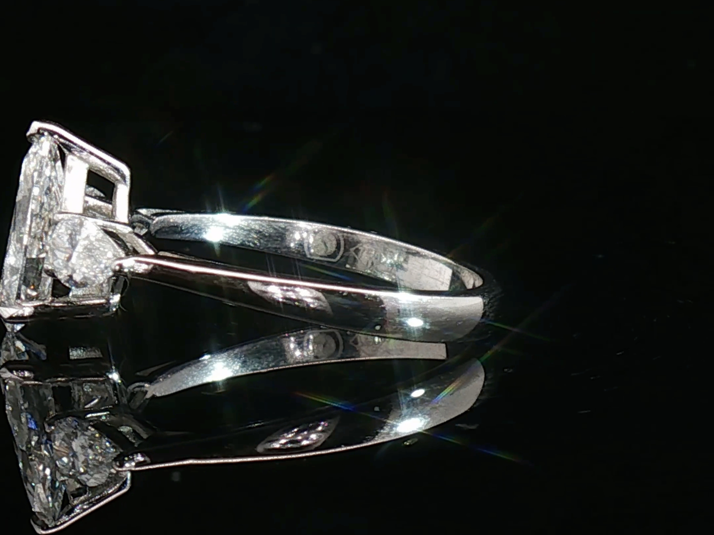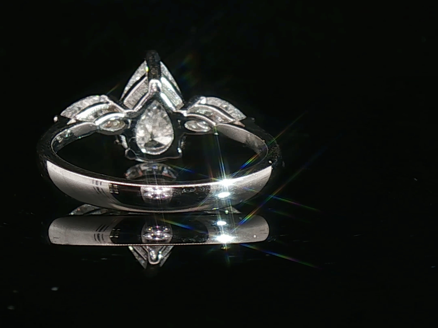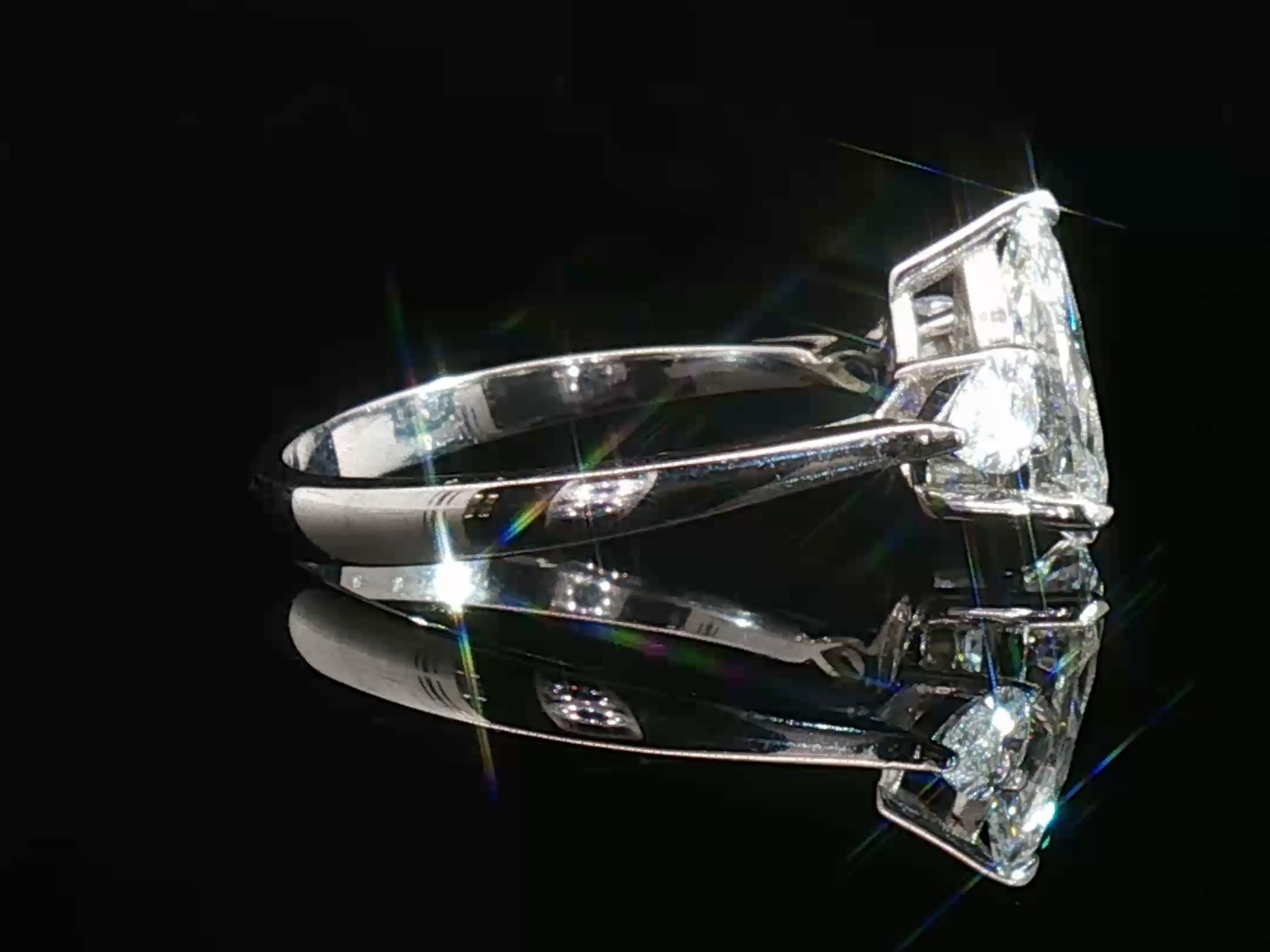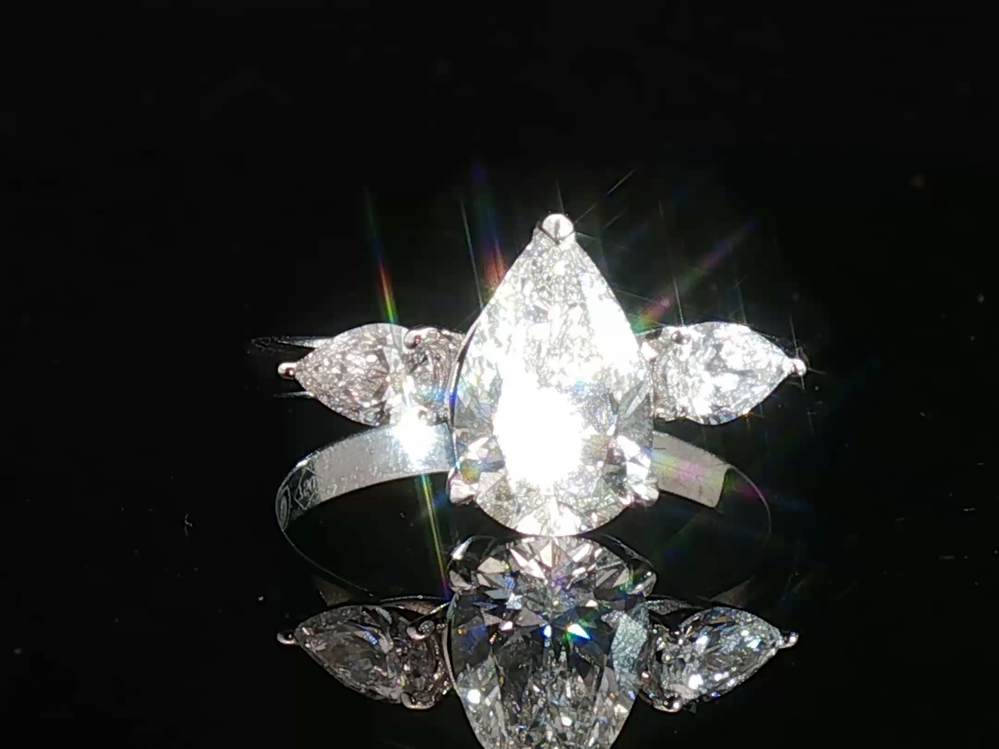 Ring set with 1 white pear-cut diamond, surrounded by 2 pear-cut diamonds