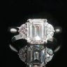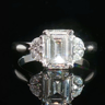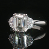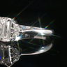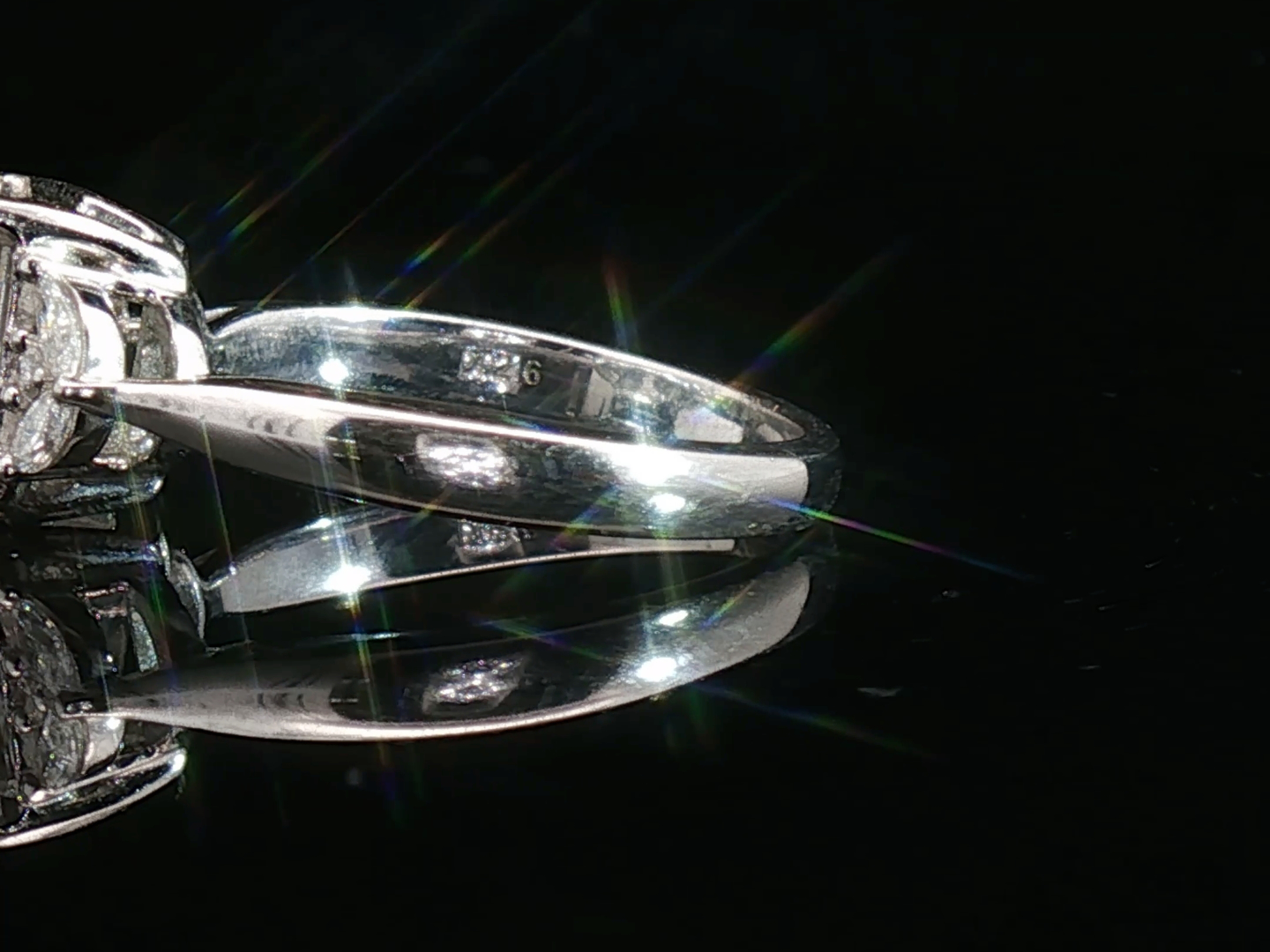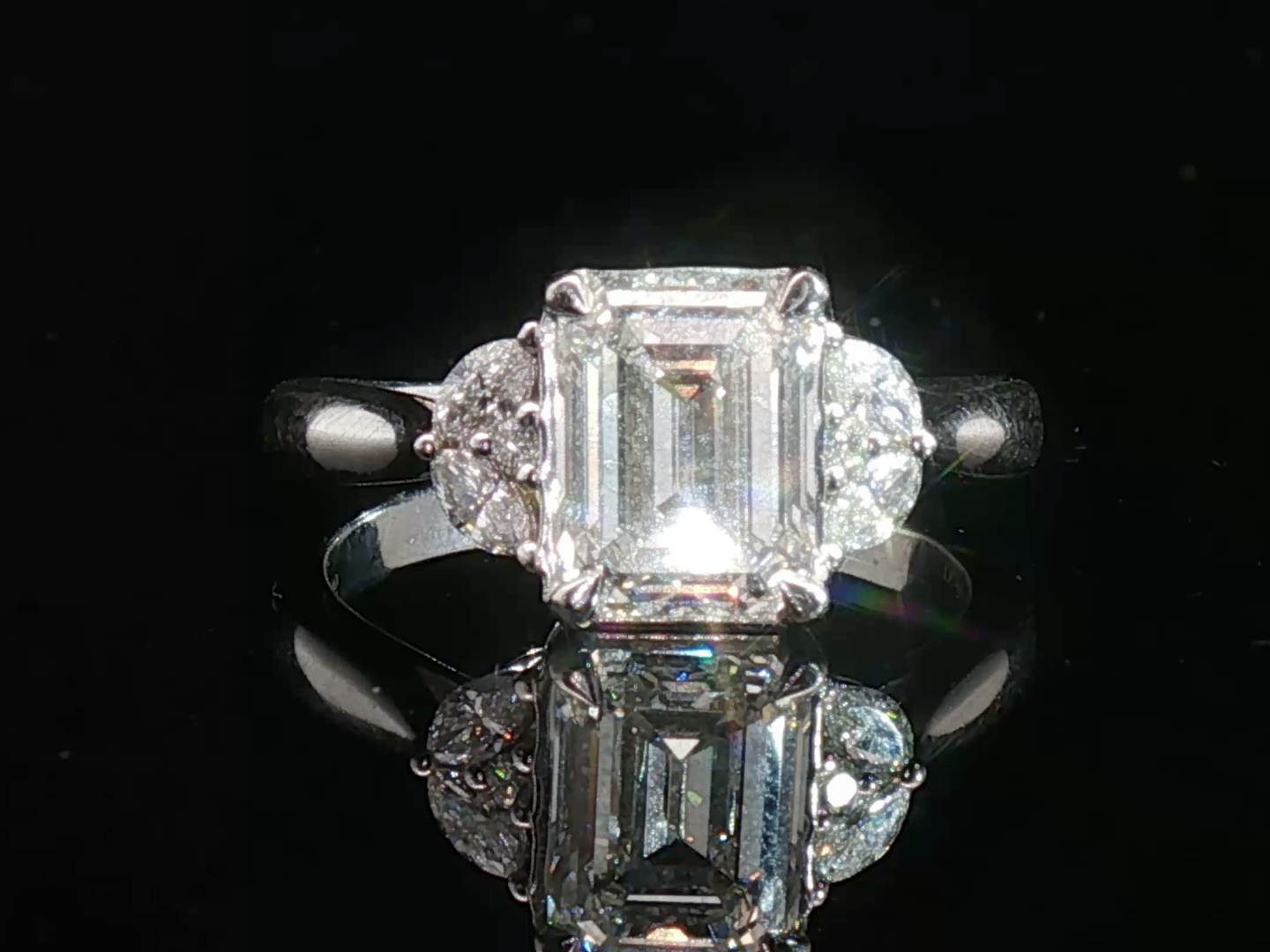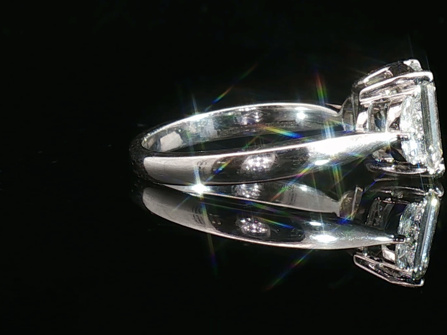 Quality ring set with 1 white emerald-cut diamond of +-2.00ct, color: F-G and clarity: VS. Surrounded by 4 marquise-cut diamonds + 2 brilliant-cut diamonds, total: 0.60ct, color: F-G and clarity: VS. Set in 18kt white gold (stamped 750). Ring size: 51-53