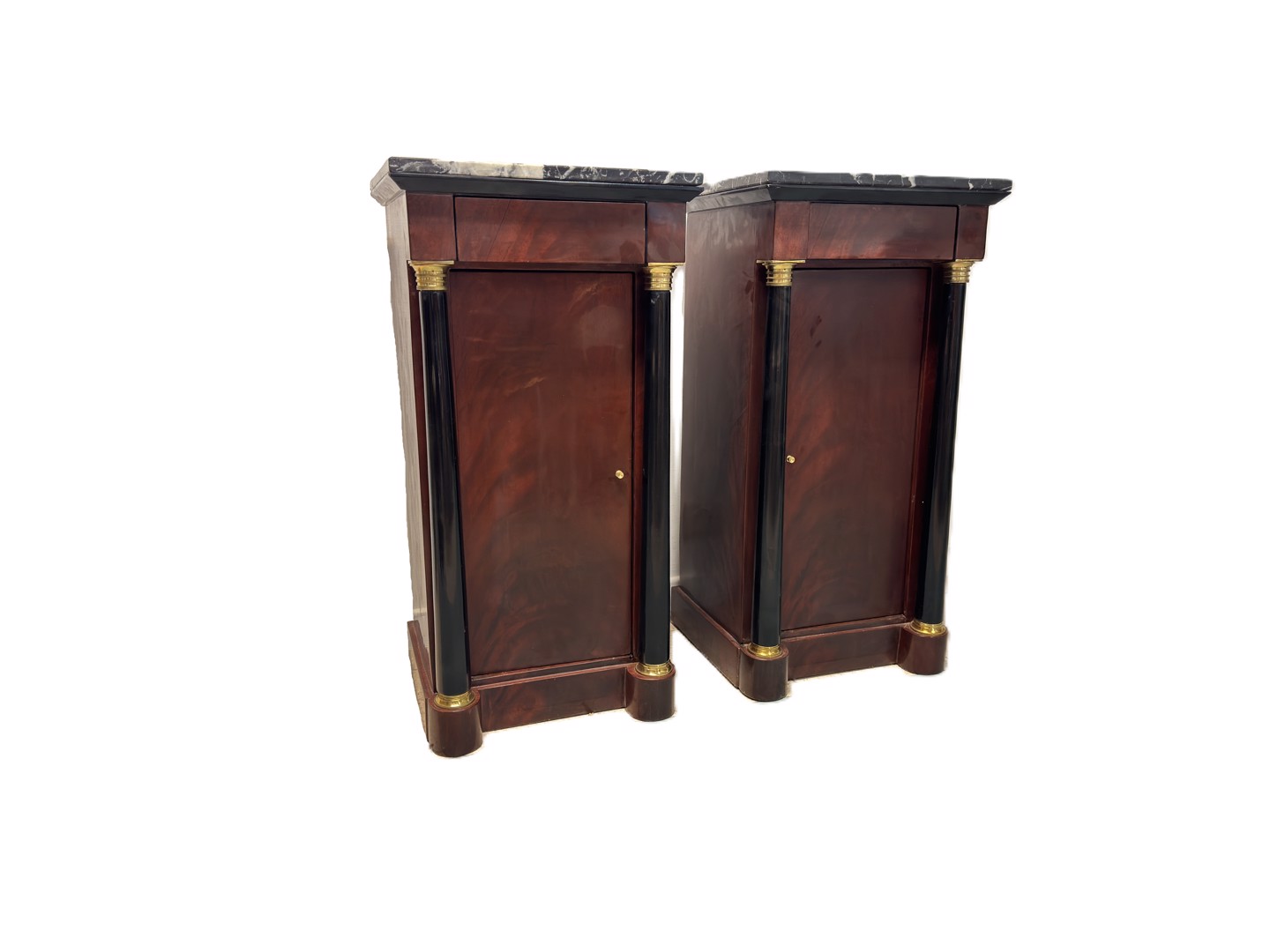 Pair of side cabinets in mahogany with marble top, Empire style 20th century