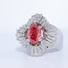Exclusive ring set with 1 light vived pink diamond oval cut +- 2.60cts. treated color surrounded by 32 diamond tapers in total: +- 4.20cts. set in white gold 18ct. (hallmark 750) ring size: 56-58 ring 22.40 mm. x 22.40 mm.