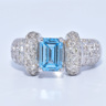 Exclusive ring set with 1 intensive light blue diamond +- 1.40ct. treated color surrounded by 128 brilliants +- 1.30ct. color: F-G-H and clarity: VS Ring Size: 55-57