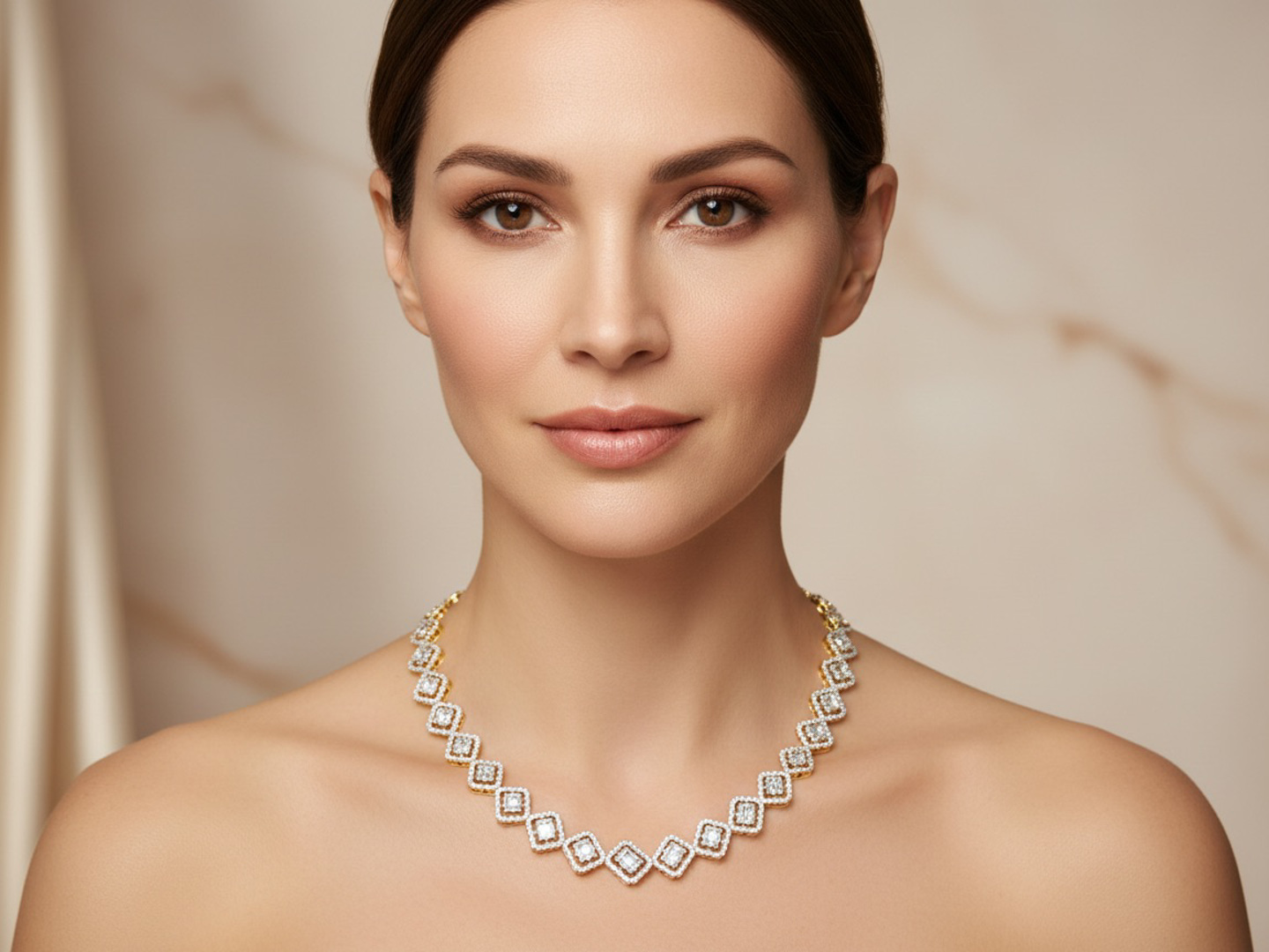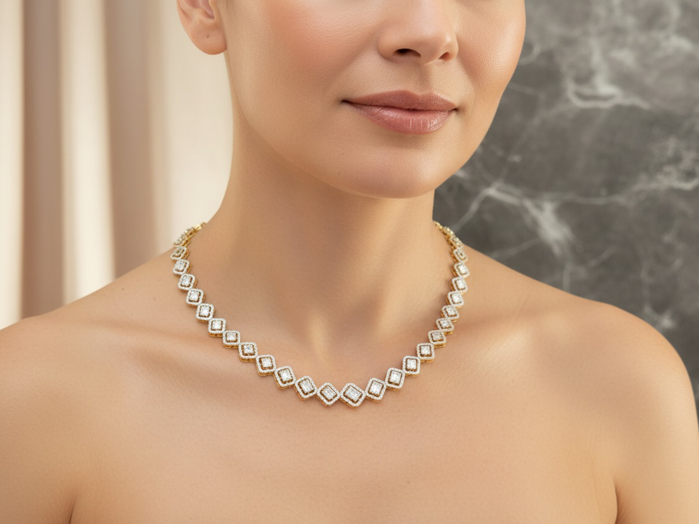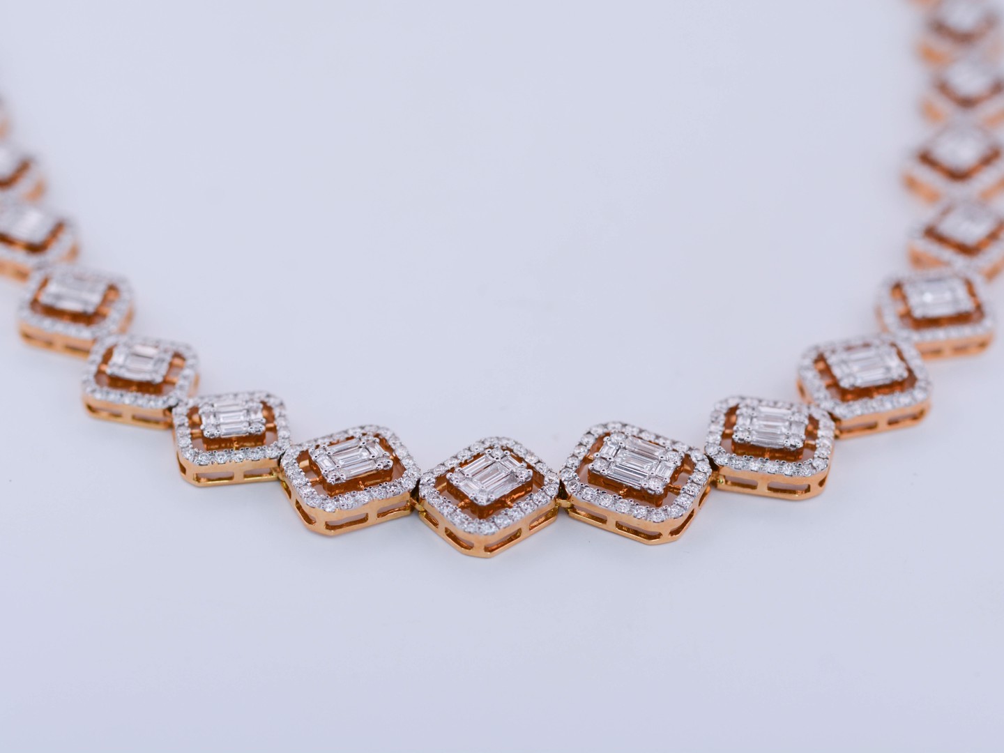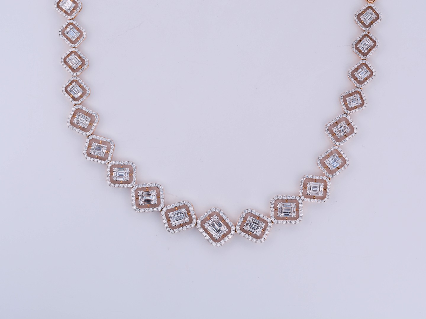 Sublime necklace illusion setting set with 502 brilliants + 95 emerald cut diamonds
