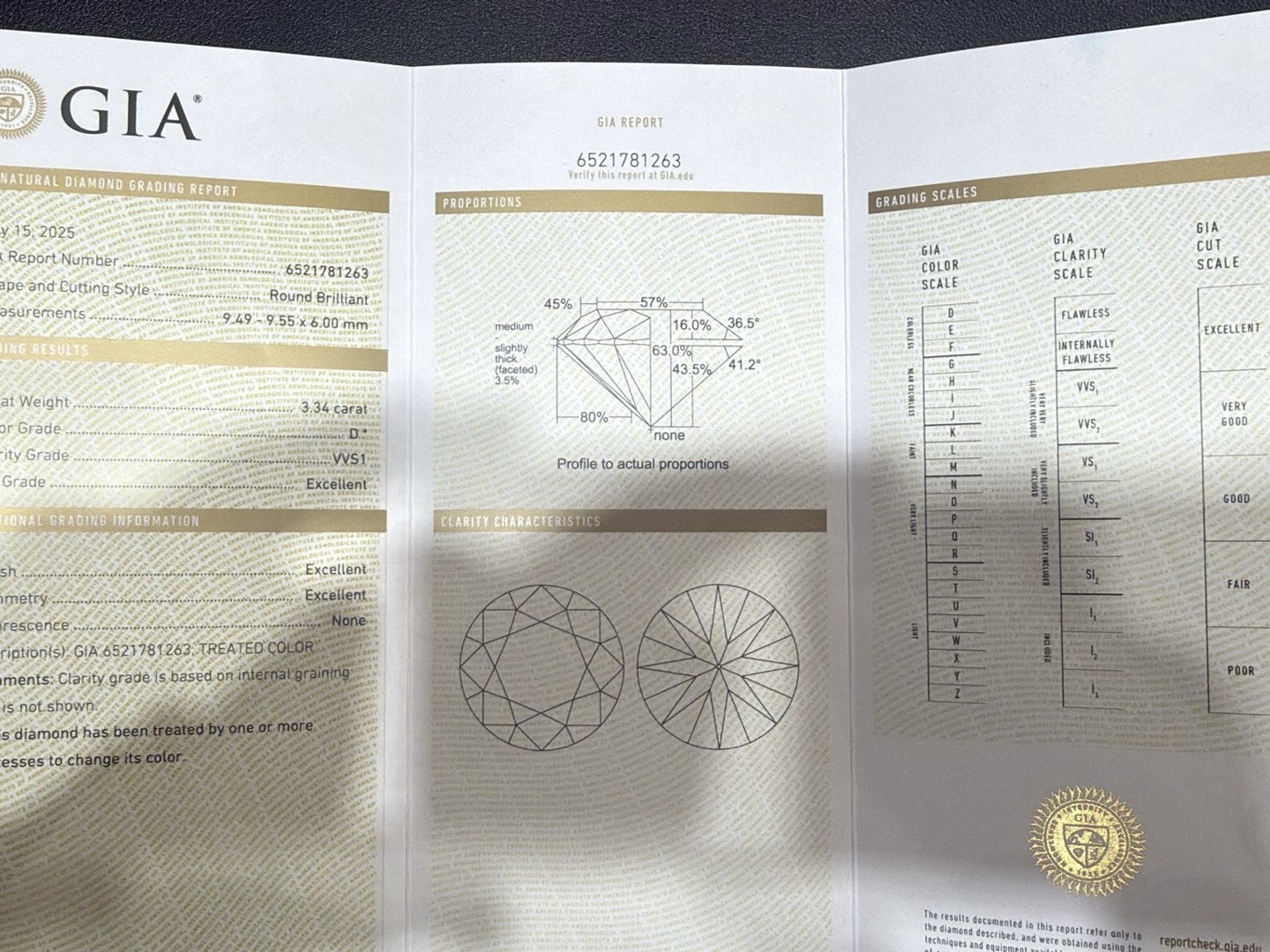Quality ring with 1 diamond of approximately 3.34 CT, color: D and clarity: VVS1 with GIA Certificate