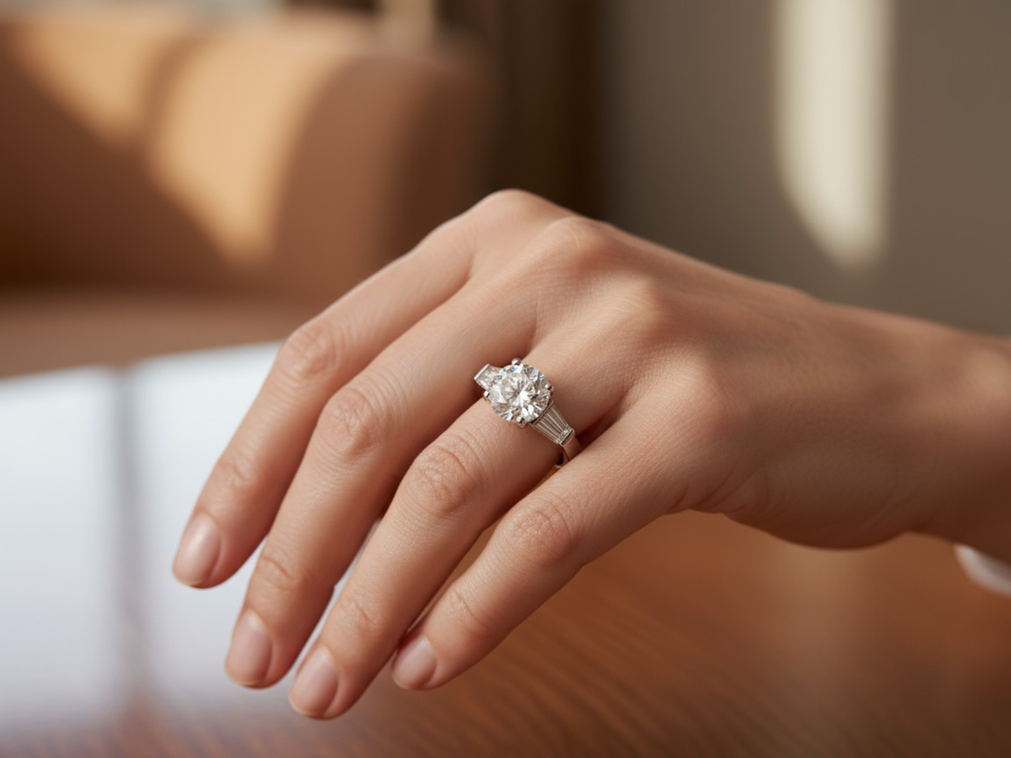 Quality ring with 1 brilliant of +-3.34 CT, color: D and purity: VVS1 with GIA Certificate. Surrounded by 6 diamond baguette cut: +-1.00CT, color: D-F-G and clarity: VS. Set in white gold 18kt (marked 750)