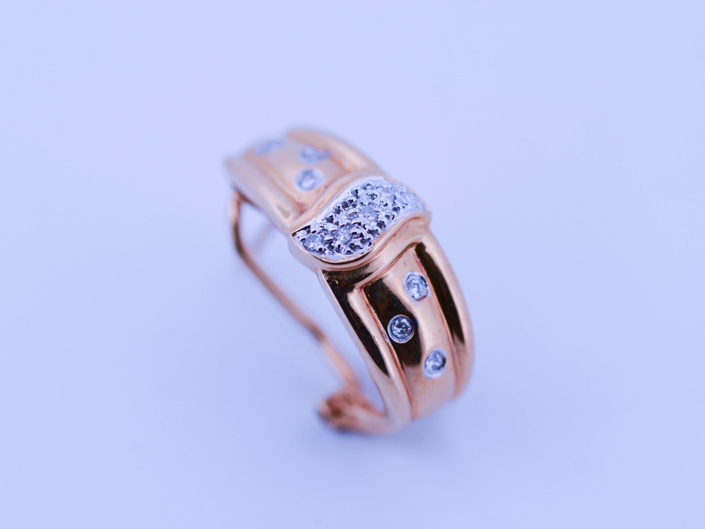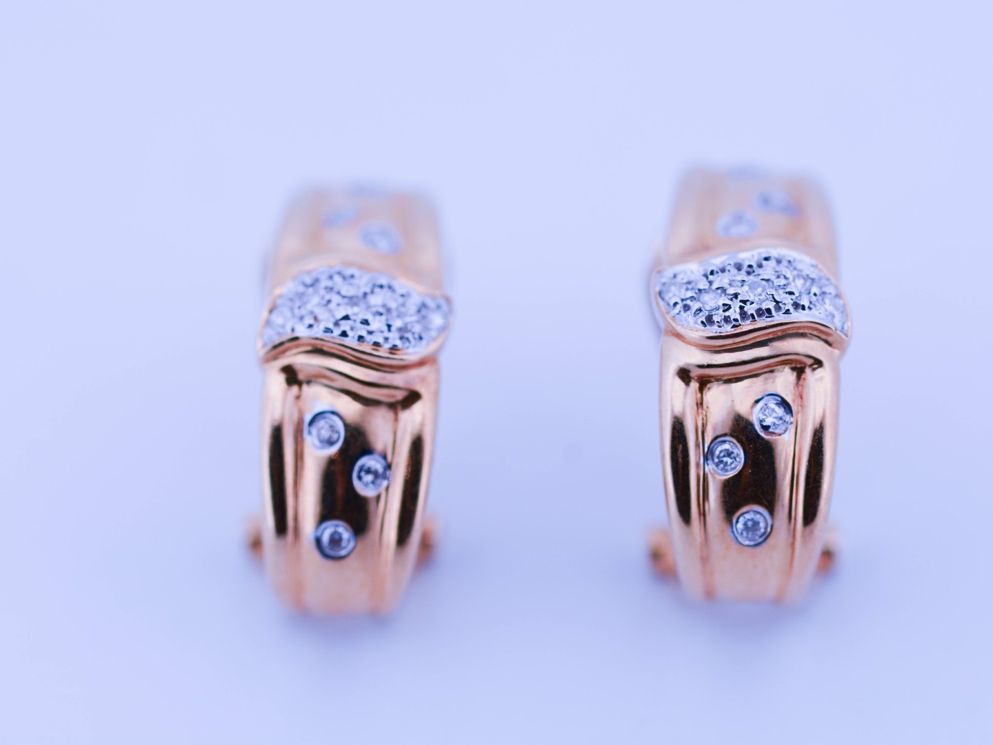 Pair of earrings in yellow and white gold 18kt (marked 750), set with 22 brilliants: +-0.22CT. Color: I and purity: VS. Length: +-20 mm, weight: +-7 grams