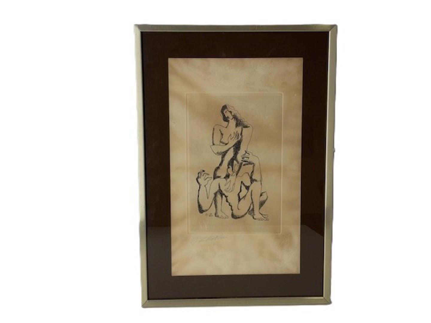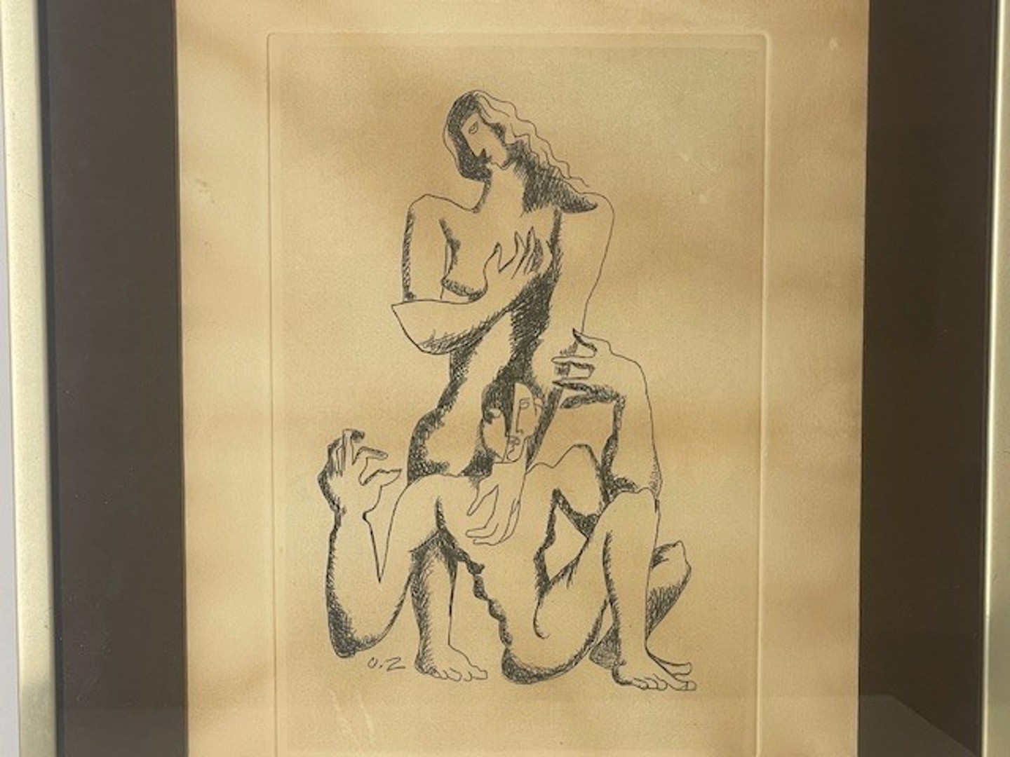 Etching signed: Ossip Zadkine [1890-1967] numbered: 23/30, "man and woman." Dimensions: 28cm x 18cm and with frame: 55cm x 38cm