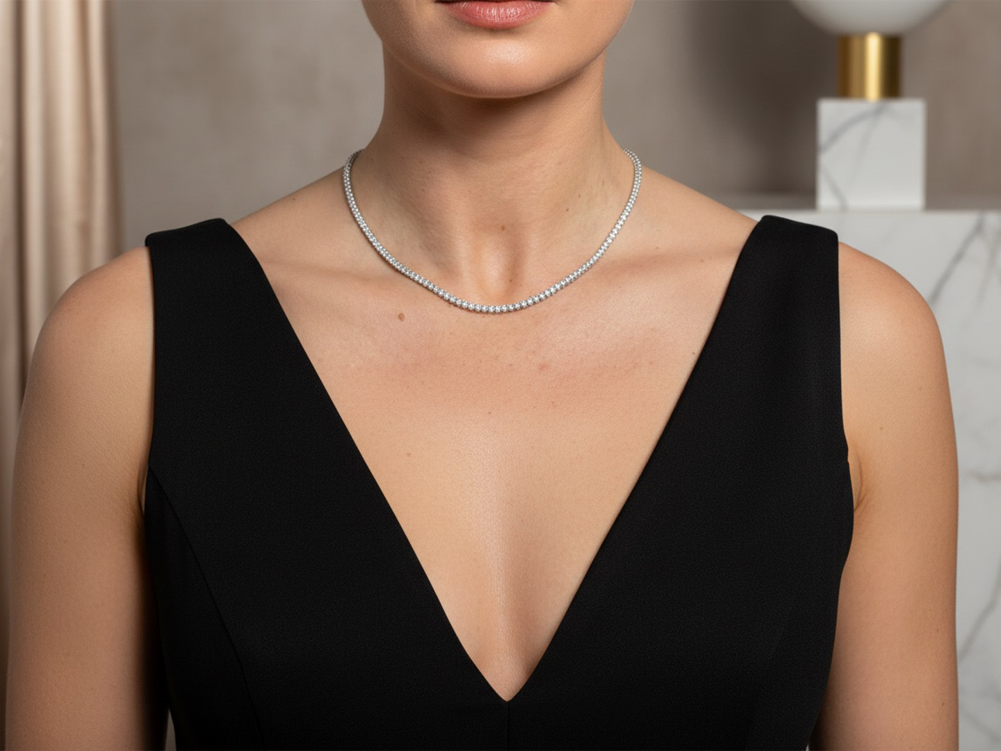 Quality river necklace, set with 158 white diamonds cut in brilliant shape, total: +-9.40CT