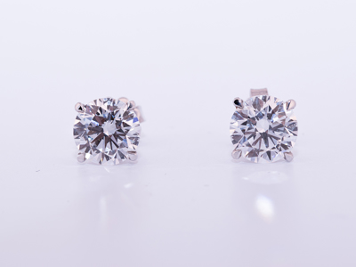 Paar oorbellen solitaire briljant geslepen van +-1.00CT, kleur: D-F-G en zuiverheid: VS. I ngezet in wit goud 18kt (gemerkt)