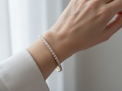 Quality slave bracelet set with white diamond baguettes + brilliant cut - 2,85 carat