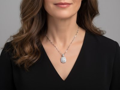 Elegant necklace pendant illusion setting set with white diamonds, color: F-G and clarity: VS, total: 1.40CT