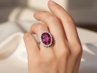 Sublime ring set with 1 ruby of approximately 8.00CT. Surrounded by 20 brilliant diamonds: approximately 1.00CT
