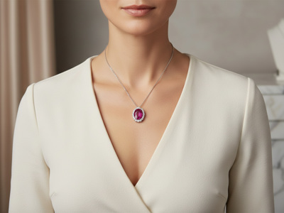 Sublime pendant set with 1 ruby of approximately 9.00CT surrounded by 23 diamonds approximately 1.40CT