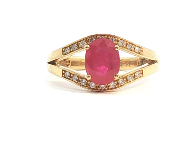 Elegant ring set with a single ruby ??of approximately 2.00 cts. surrounded by 18 brilliant-cut diamonds of approximately 0.36 ct.
