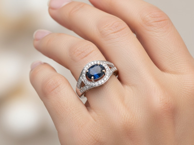 A beautiful ring set with a single Ceylon sapphire of 0.70 carat surrounded by 10 brilliant-cut diamonds 0.20 carat