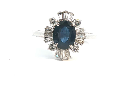 Elegant ring with a Royal Blue sapphire of 1.20ct. surrounded by 47 brilliant-cut diamonds