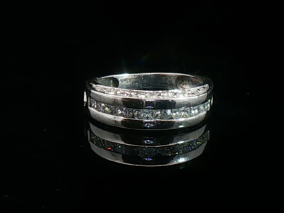 Ring set with double row of white diamonds (30) brilliant cut Channel setting
