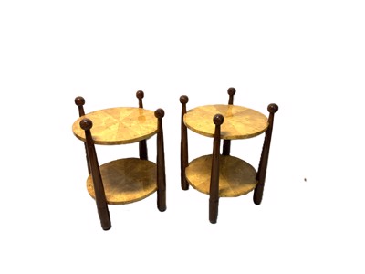 Pair of side tables in art deco style made of veneered walnut