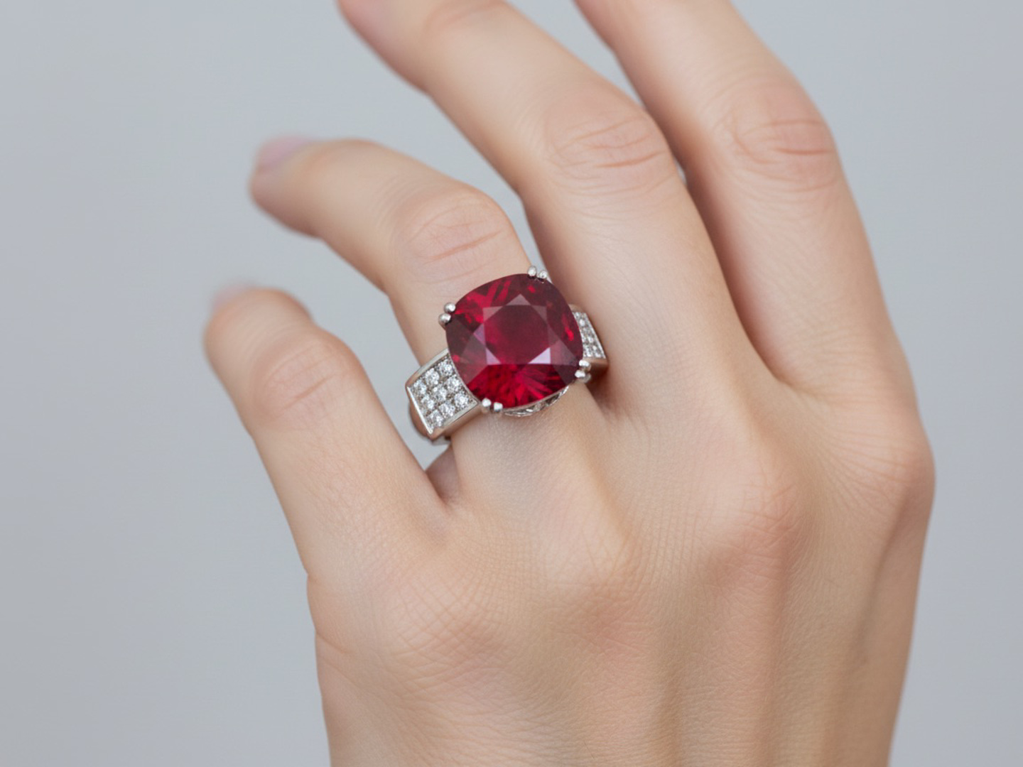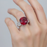 Superbe bague ornée d’un rubis d’environ 12 carats, d’un rouge profond et lumineux.