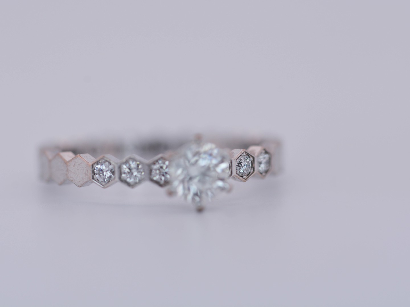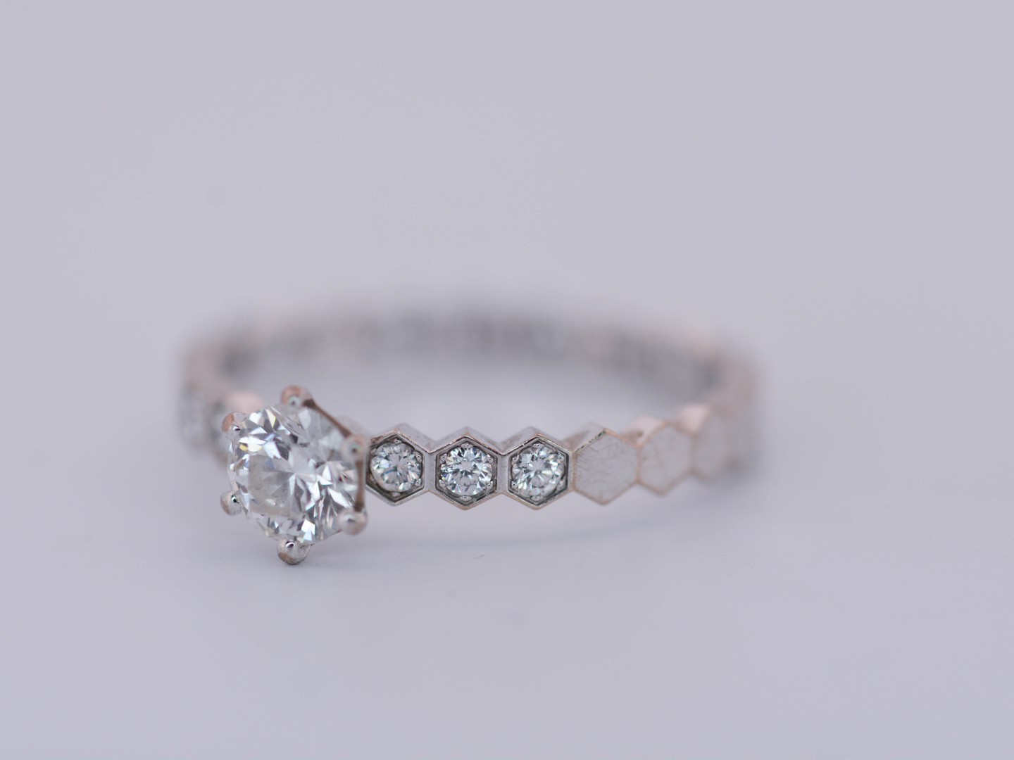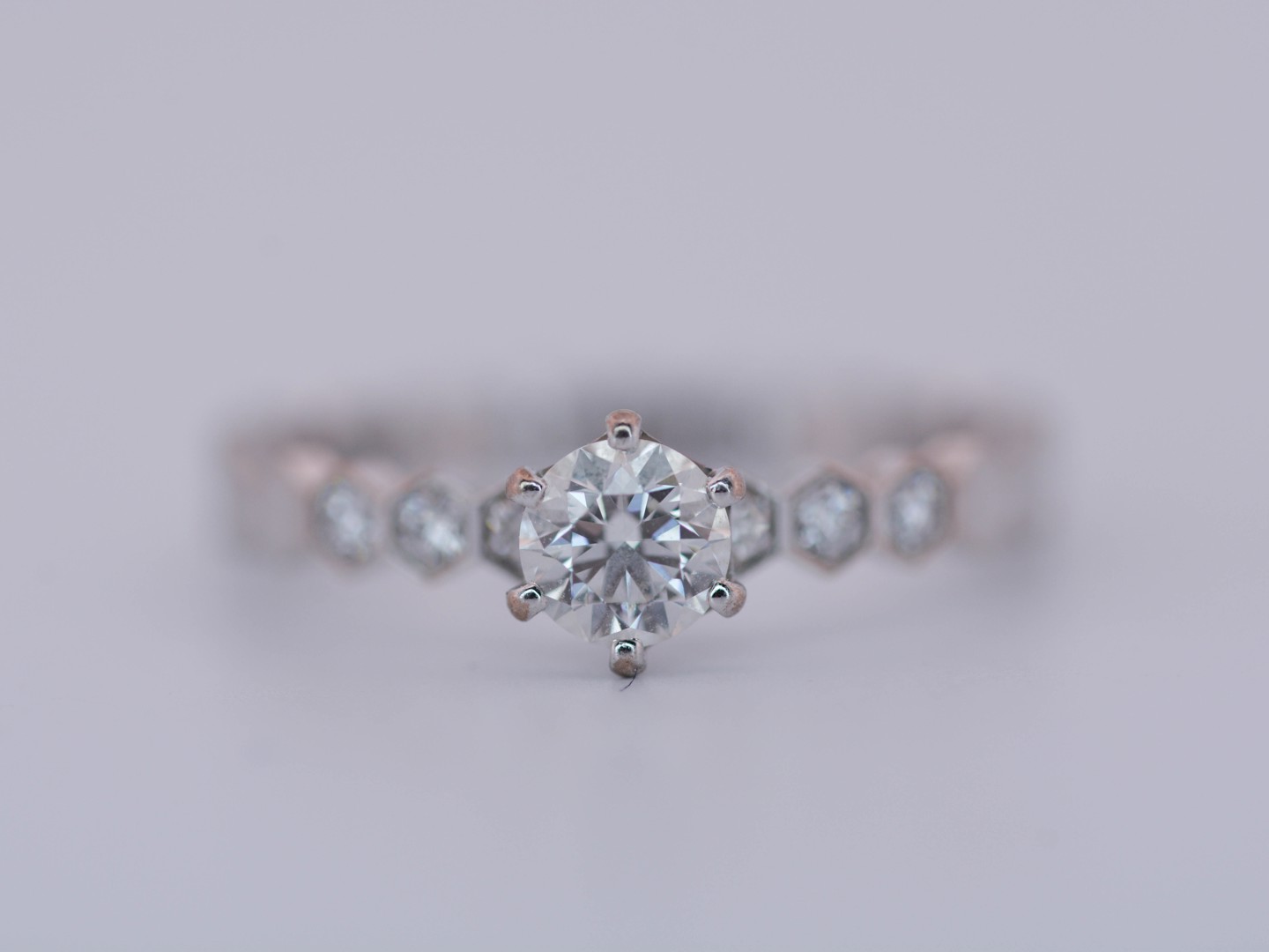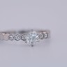 Élégante bague signée Chaumet, ornée d’un diamant taille brillant central d’environ 0,30 carat, entouré de six petits brillants délicatement sertis.