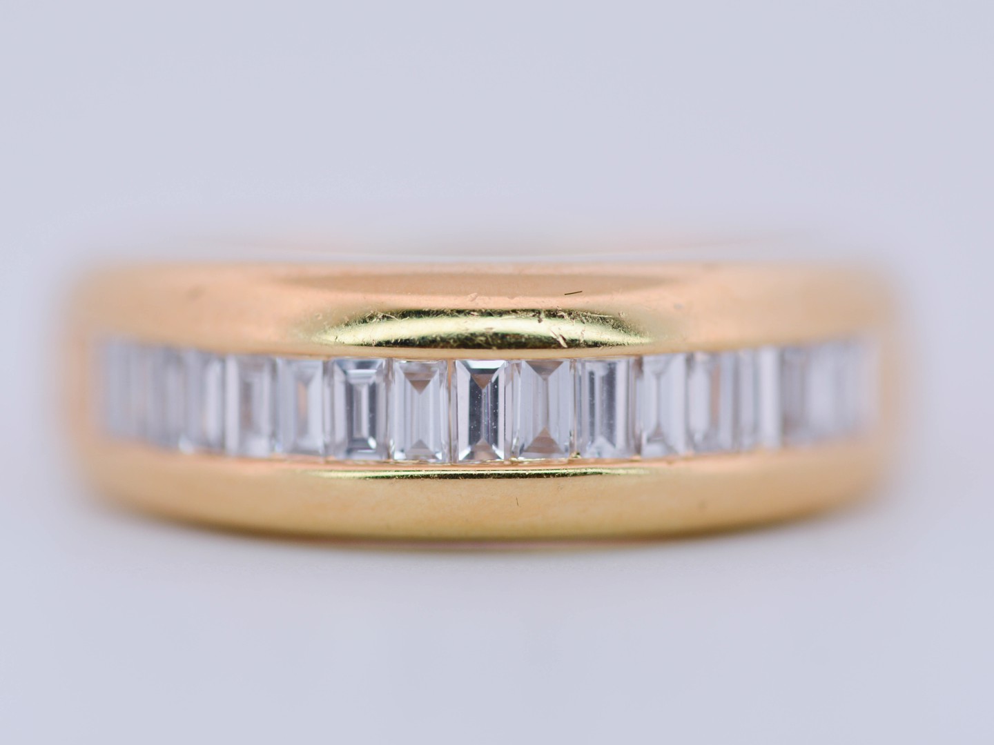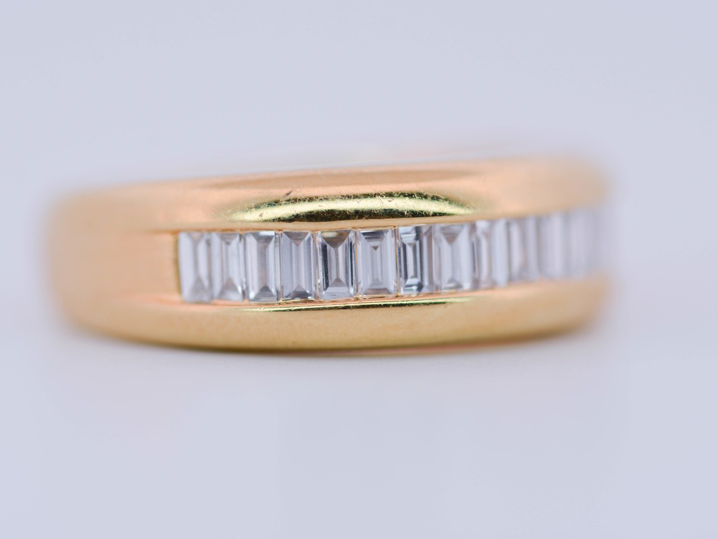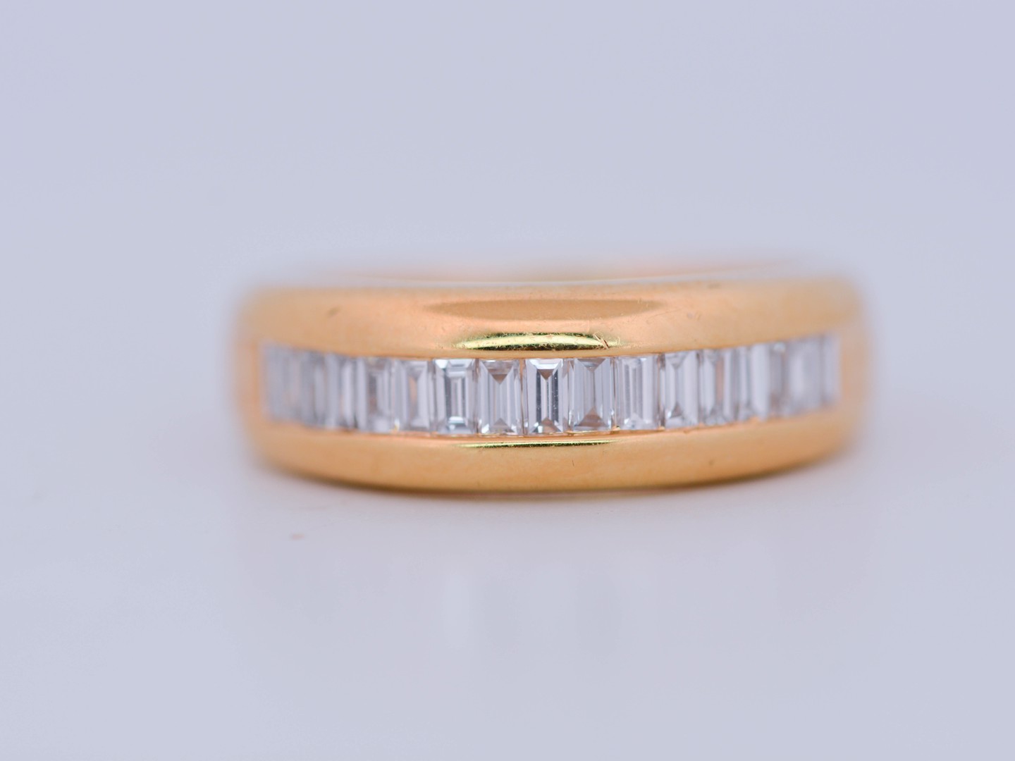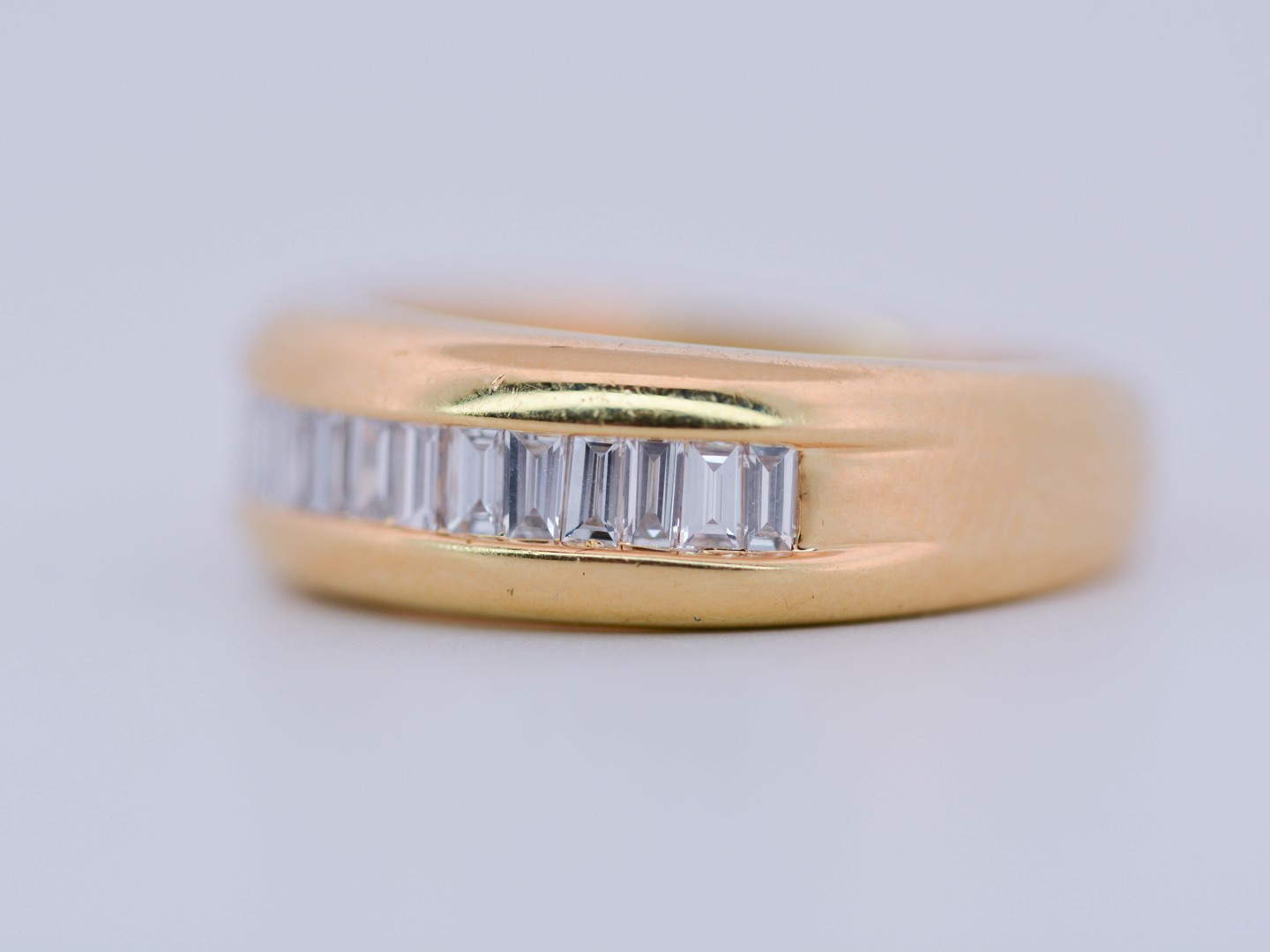 Élégante bague inspirée d’un modèle de la maison Cartier, sertie de 17 diamants blancs taille baguette, totalisant environ 1,20 carat.