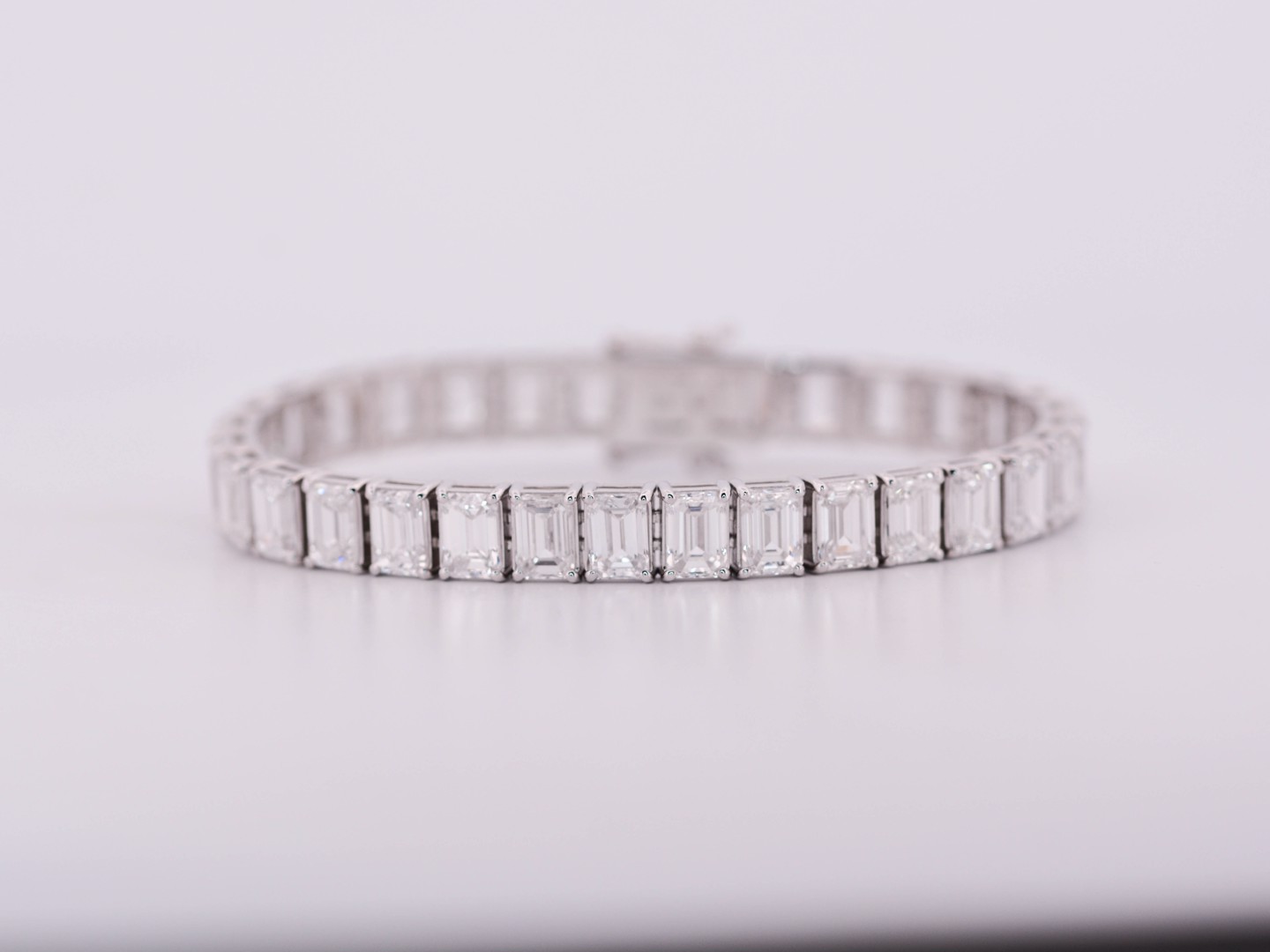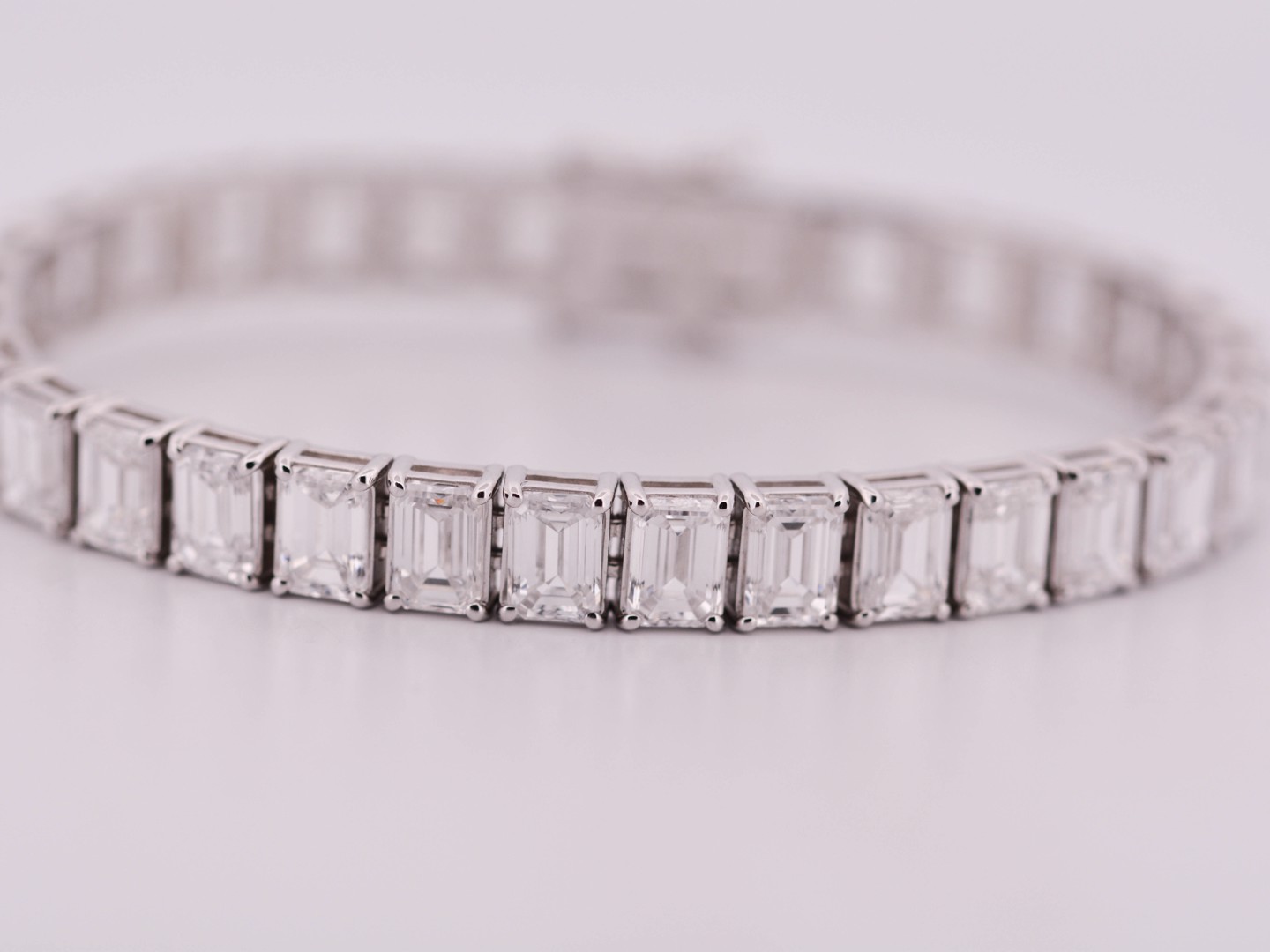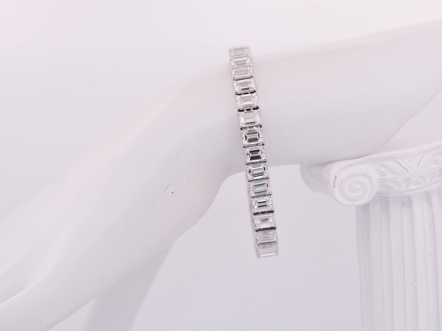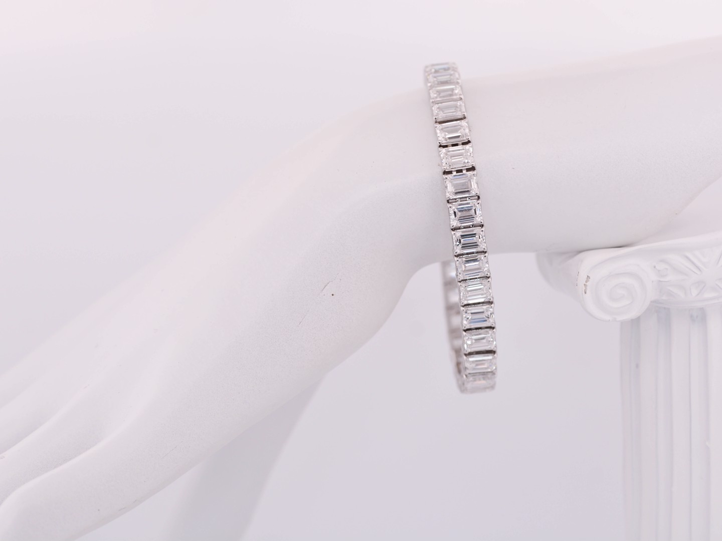 Superbe bracelet, serti de 32 diamants blancs taille émeraude, totalisant environ 32 carats.
