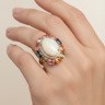 Bague exclusive sertie d'opale multicolore entourée de saphirs roses, jaunes, verts et blancs et 1 rangée de 30 diamants taille brillant