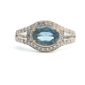 Belle bague ornée d'un saphir : +-1,50 ct, bleu clair transparent, entourée de 42 brillants
