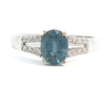 Magnifique bague sertie d'un saphir bleu clair transparent +-0,75 ct, entouré de 16 petits diamants