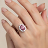 Bague élégante sertie d'un rubis d'environ 2,80 cts. entouré de 12 diamants taille brillant d'environ 1,20 ct.
