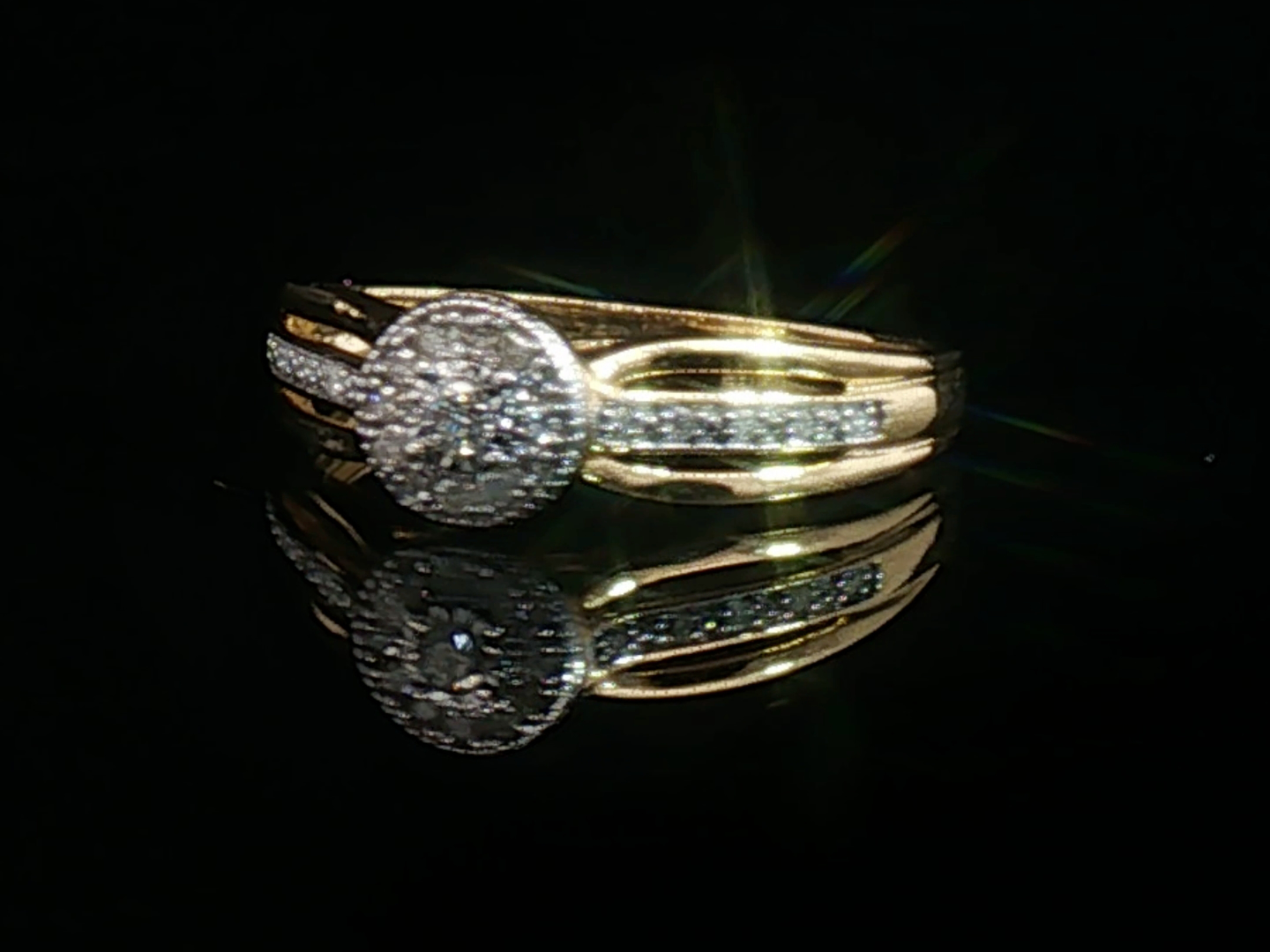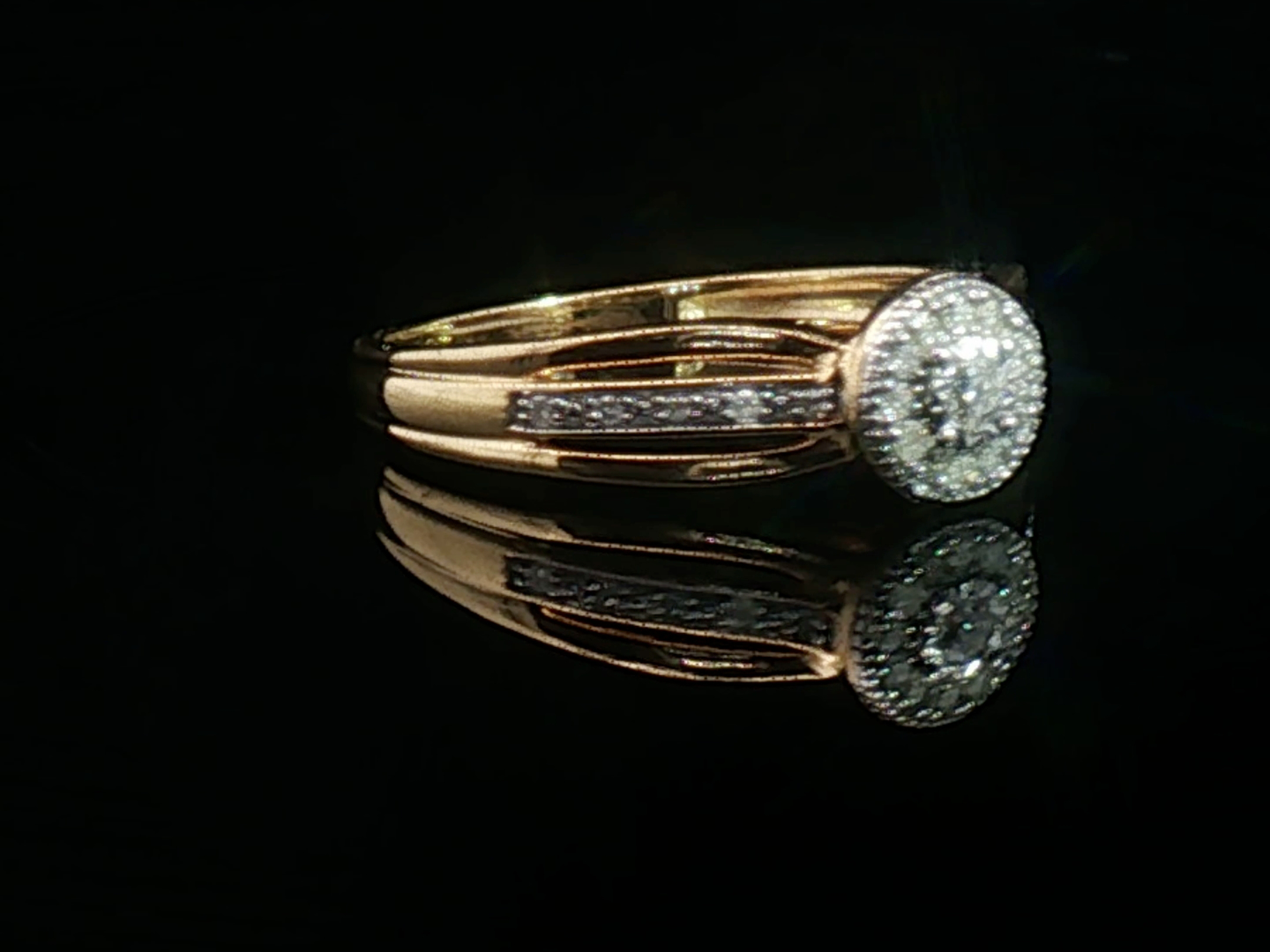 Bague élégante sertie de 23 diamants taille brillant 0,30ct couleur G et pureté SI, serti en or jaune 18 carats (poinçon 750). Taille: 51-53. Poids : 2,14 grammes.