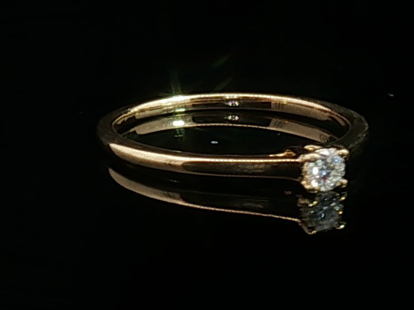 Bague en or jaune 18 carats (poinçon 750) sertie d'un diamant solitaire taille brillant de 0,15 carat. Couleur : F-G, pureté : VS. Taille: 51-54 Poids : 1,80 grammes.