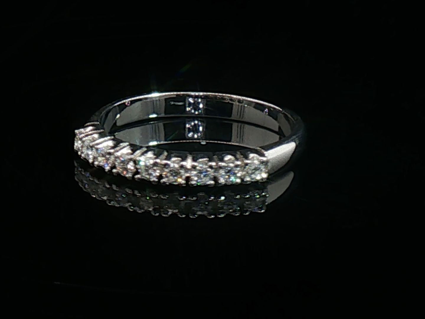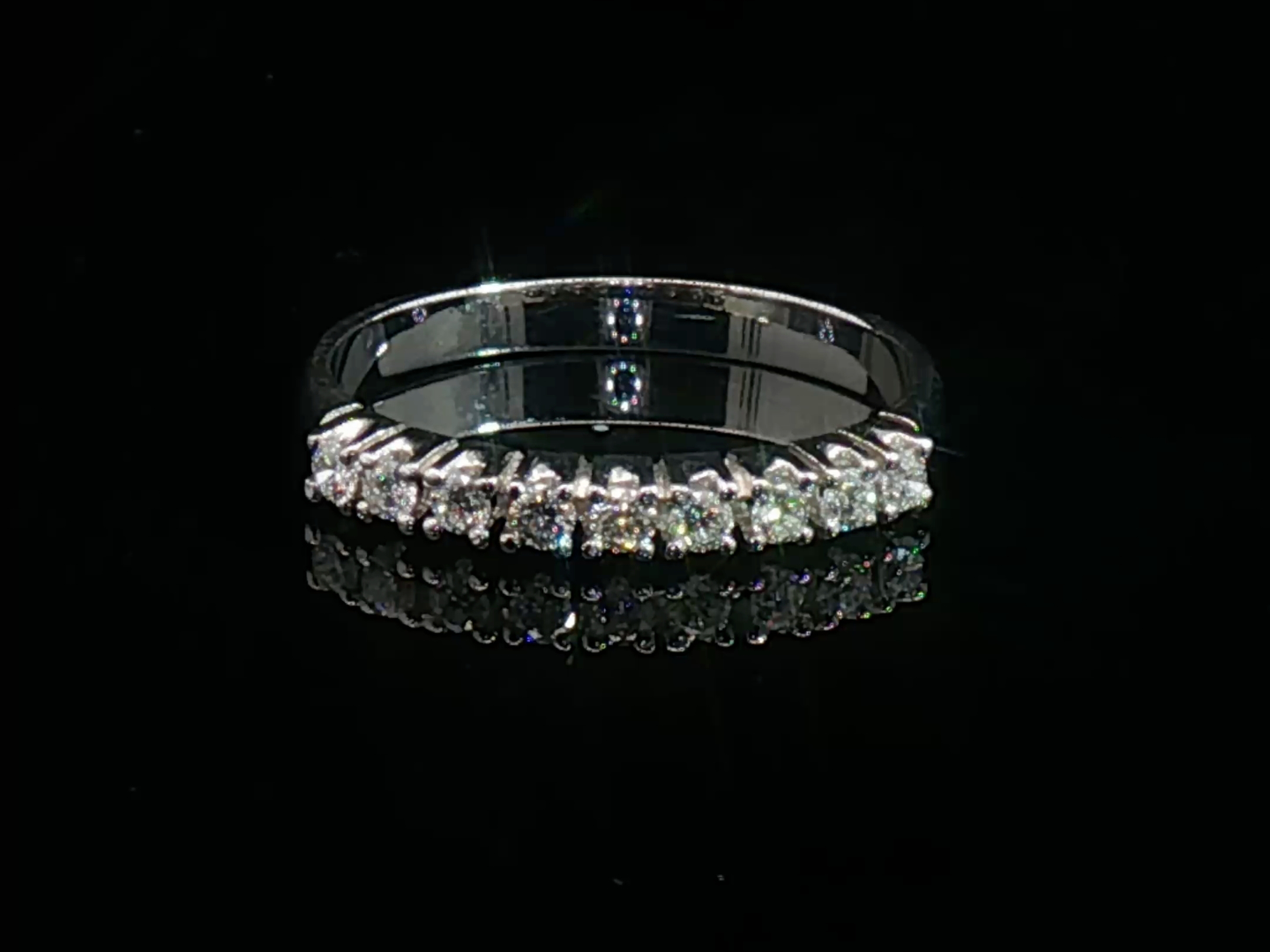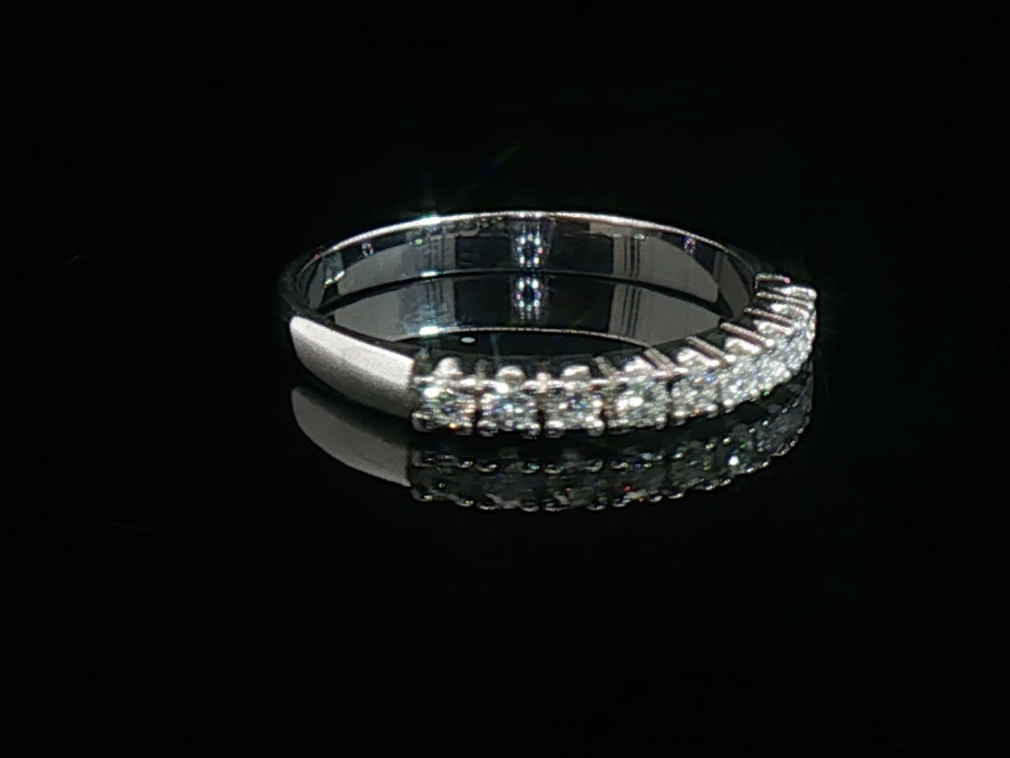 Bague demi-alliance sertie de 9 diamants taille brillant de 0,45ct. couleur : F-G, pureté : VS. Monture en or blanc 18 carats. Taille : 53- 55 Poids : 2,36 g.