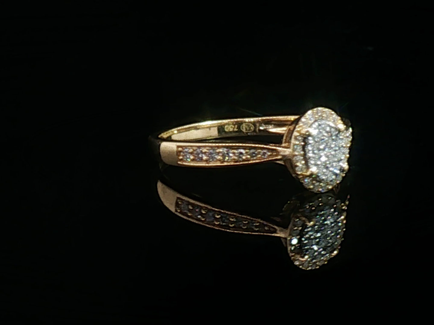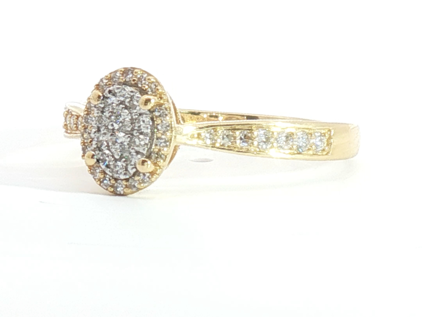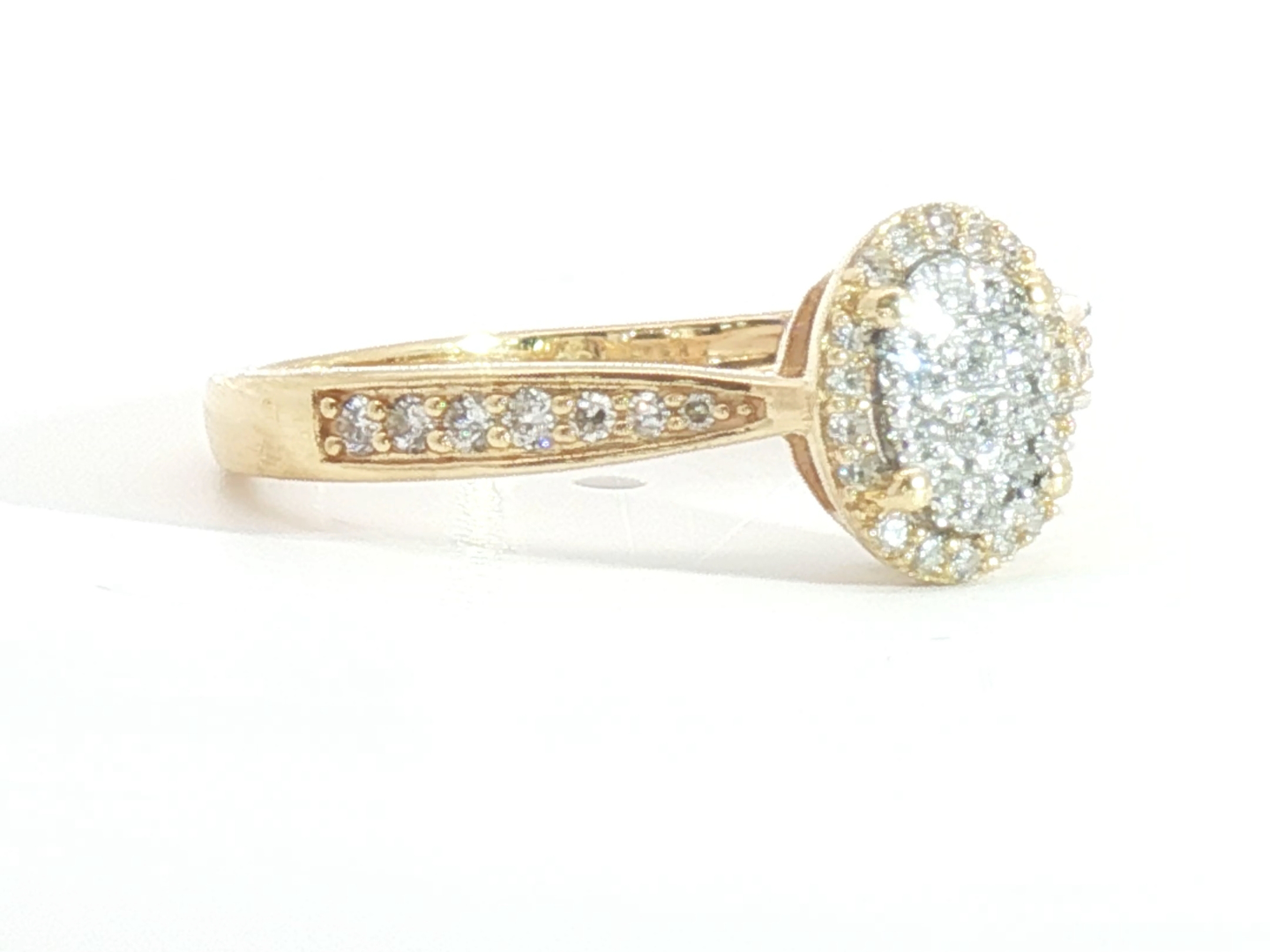 Bague fine sertie de 44 diamants taille brillant +- 0,44 ct. Couleur : G-H et pureté : VS. Monture en or jaune 18 carats (poinçon 750). Poids : 2,16 grammes. Taille: 51-54.