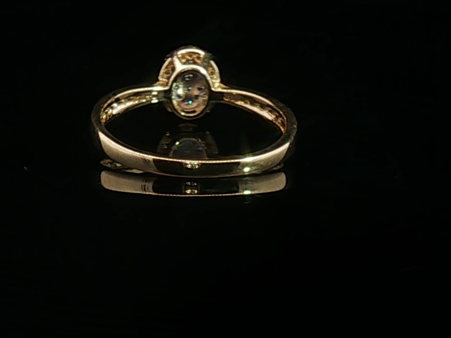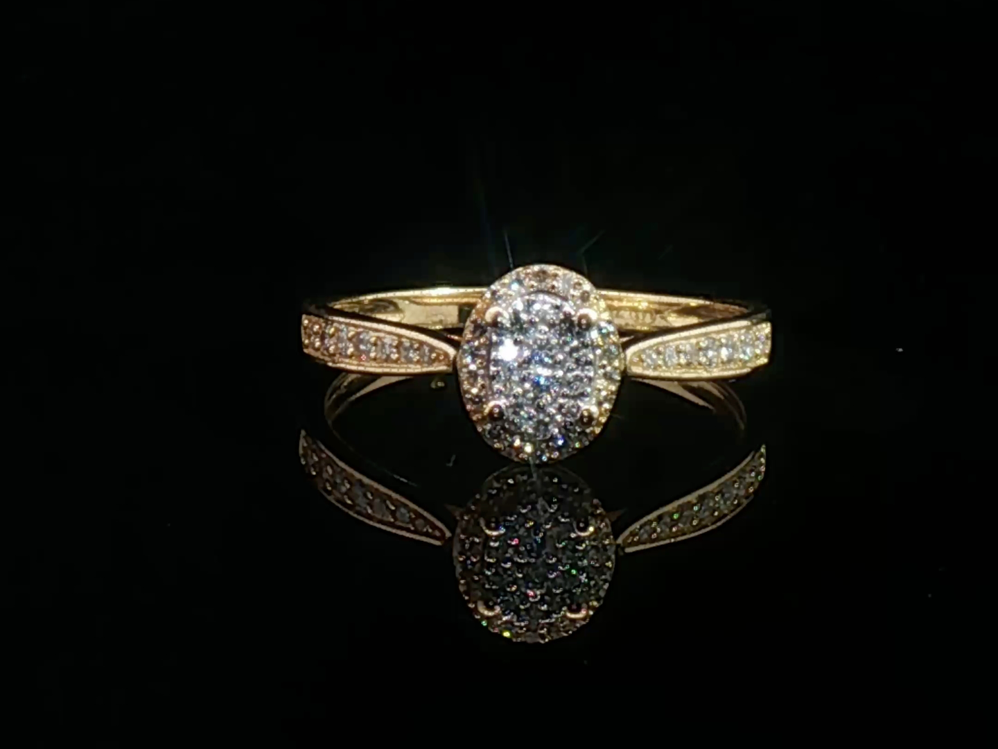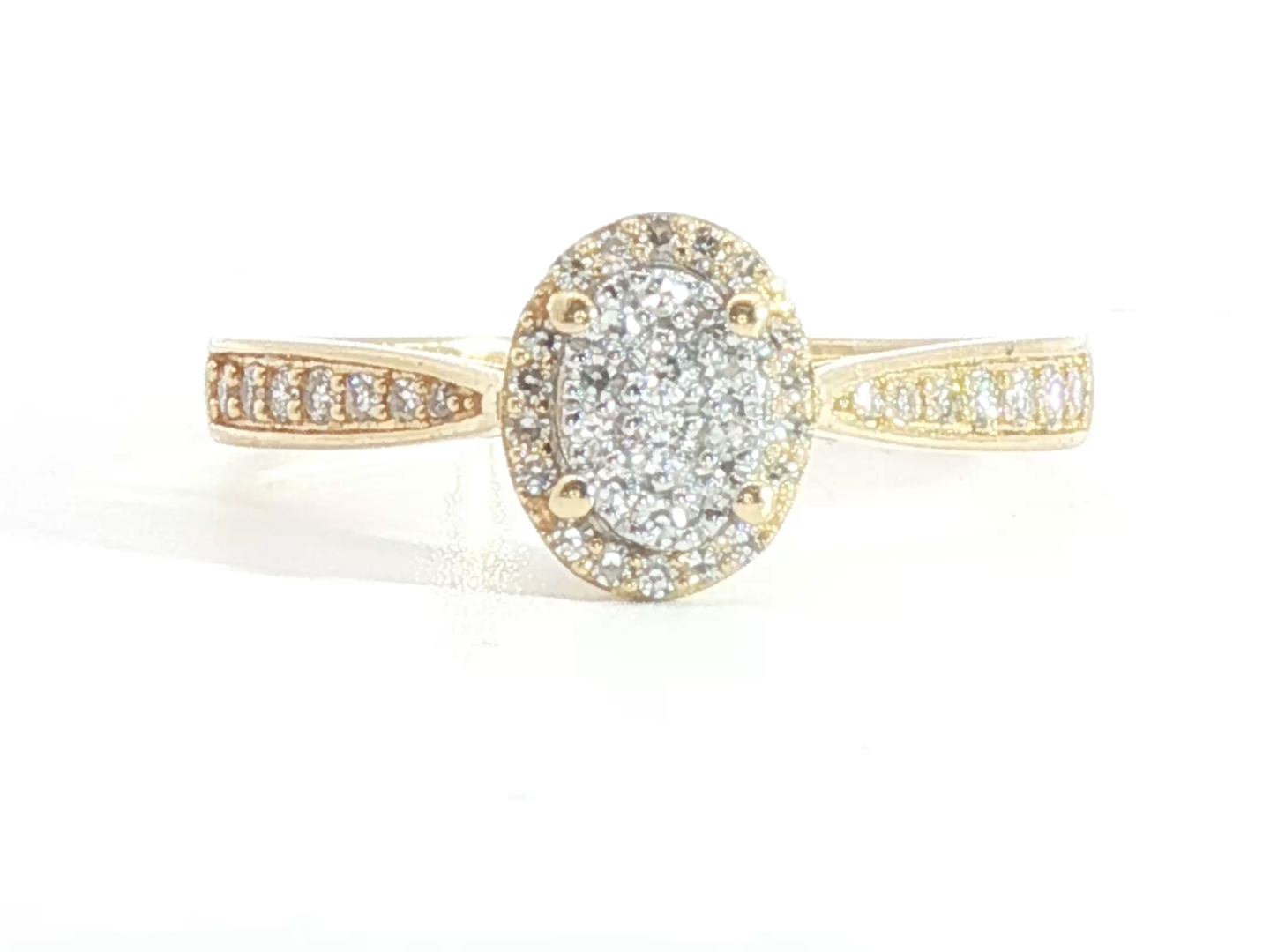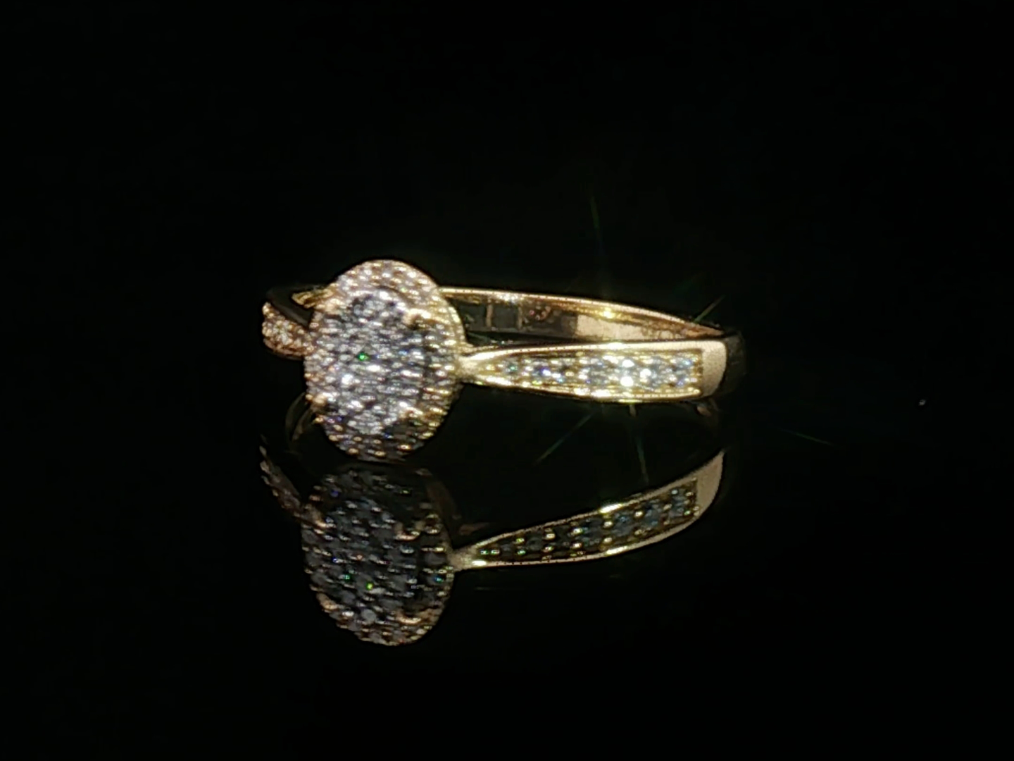 Bague fine sertie de 44 diamants taille brillant +- 0,44 ct. Couleur : G-H et pureté : VS. Monture en or jaune 18 carats (poinçon 750). Poids : 2,16 grammes. Taille: 51-54.