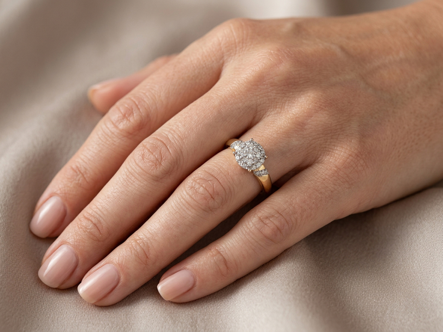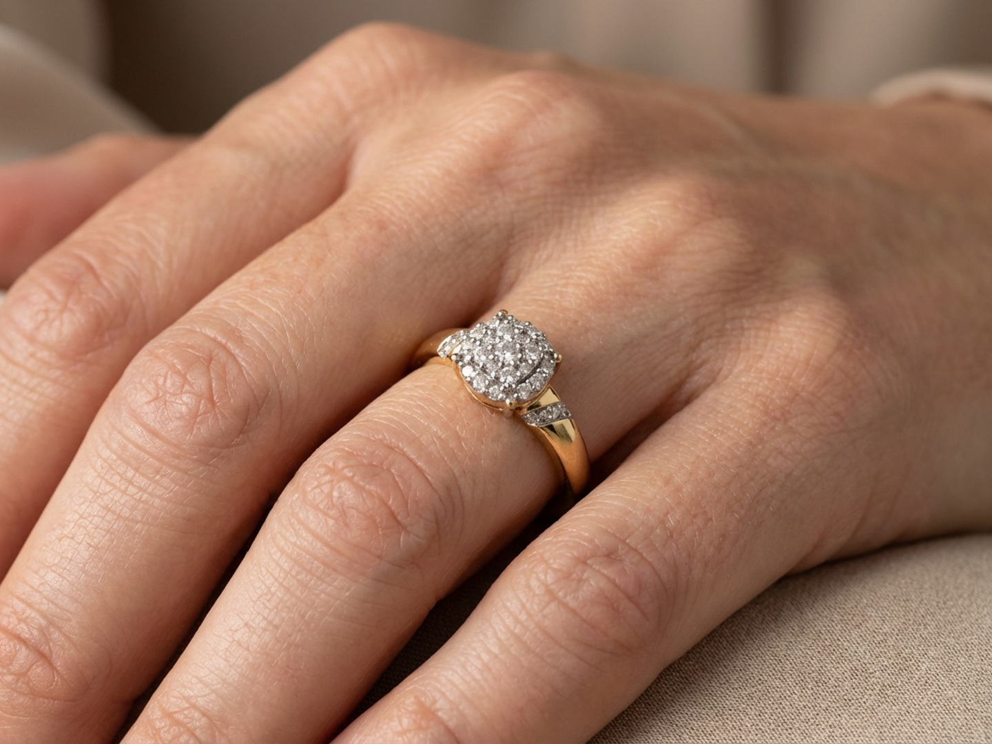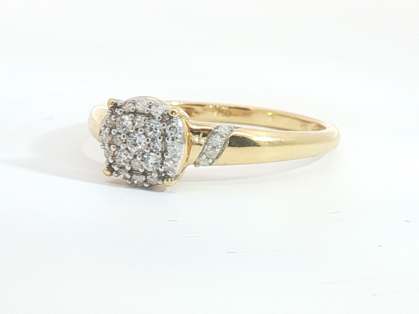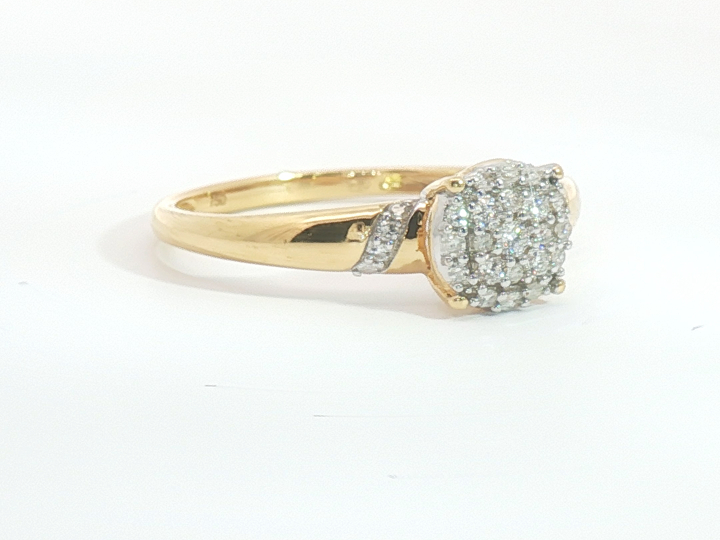 Bague élégante sertie de 29 diamants taille brillant totalisant environ 0,30ct. Couleur : G-H et pureté : VS-SI. Monture en or jaune 18 carats (poinçon 750). Taille: 51-54.