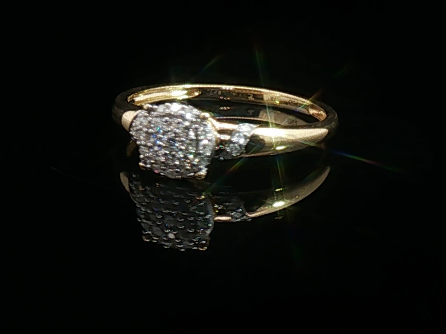 Bague élégante sertie de 29 diamants taille brillant totalisant environ 0,30ct. Couleur : G-H et pureté : VS-SI. Monture en or jaune 18 carats (poinçon 750). Taille: 51-54. Poids : 1,58 gramme.
