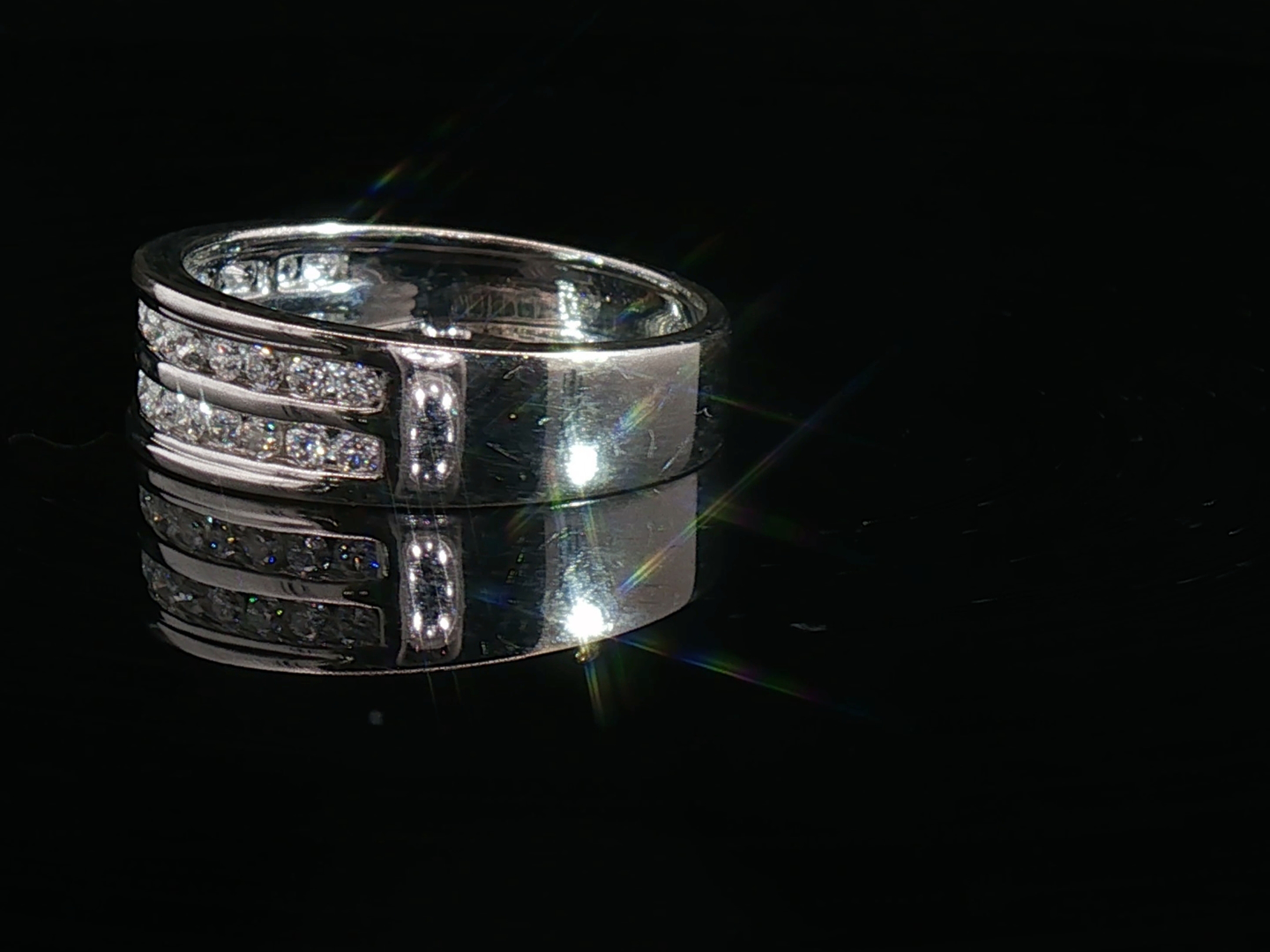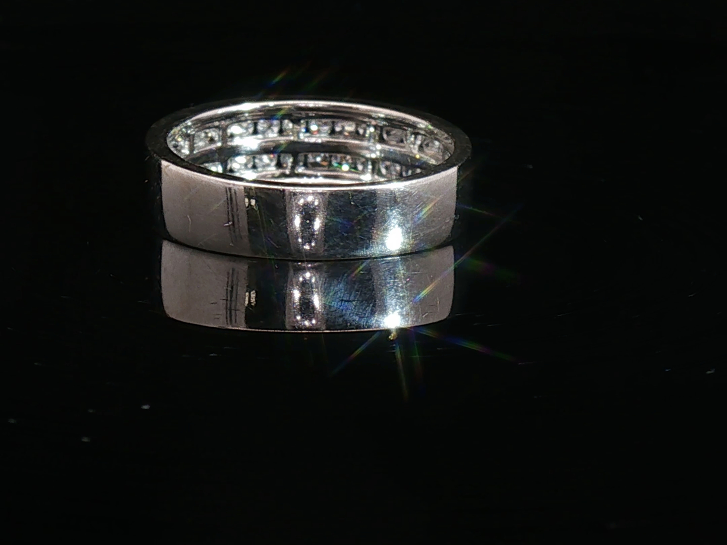 Bague sertie d'une double rangée de diamants blancs (30) taille brillant Channel setting couleur : F-G et pureté : VS serti en or blanc 18 carats (poinçon 750) taille : 51-53