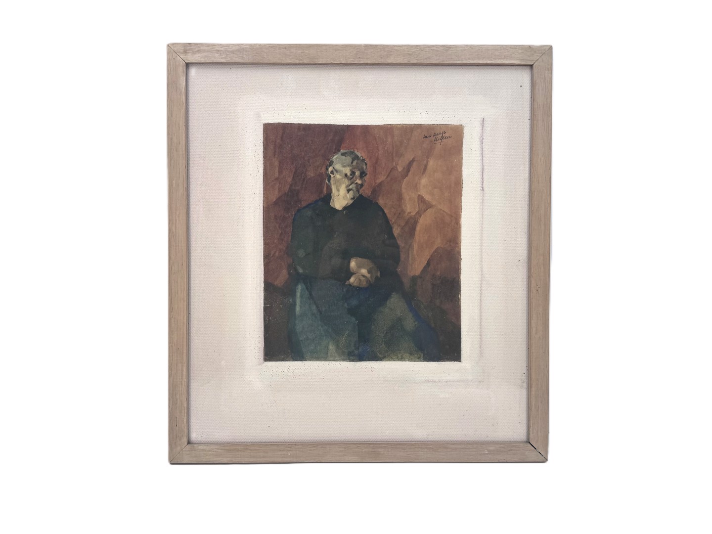 Gouache dessinée : Willem Van Hecke (1893 - 1976). 'Étude de portrait'. Dimensions : 27 x 23 et 48 x 44 cm